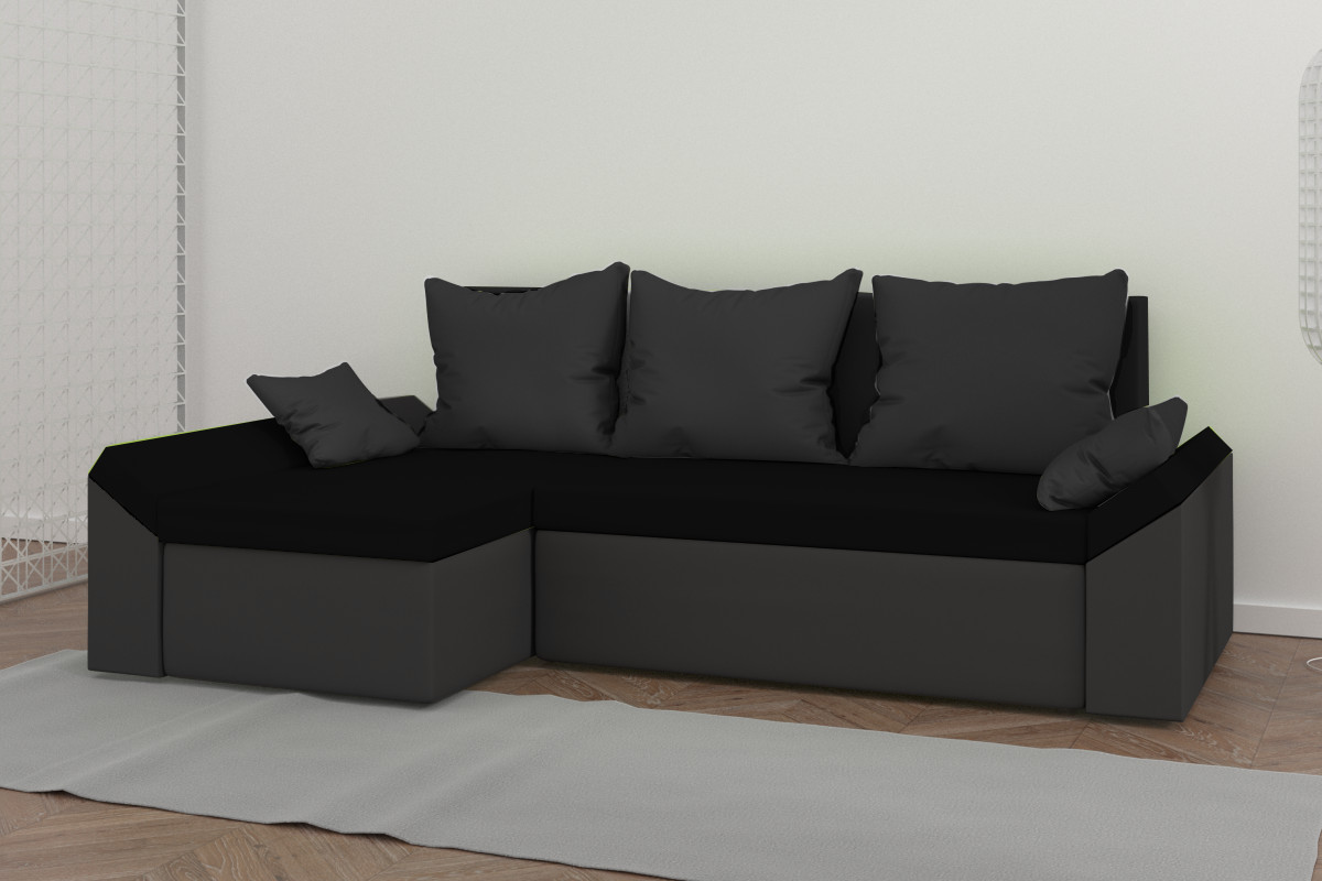 FRONTI Rohová rozkládací sedačka FLINT černo-tmavěšedá 3147
