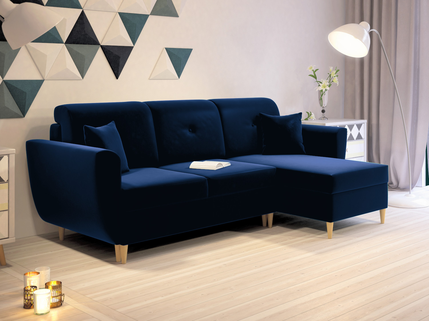 FRONTI Rohová rozkládací sedačka FREJA Tmavěmodrá - MONOLITH 77 6482