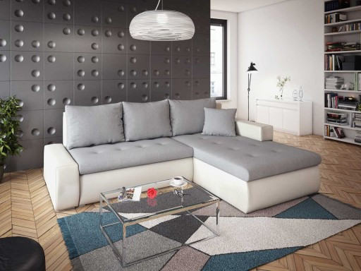 FRONTI Rohová rozkládací sedačka GRAND šedo-bílá - SAWANA 84 + MADRYT 920 3276