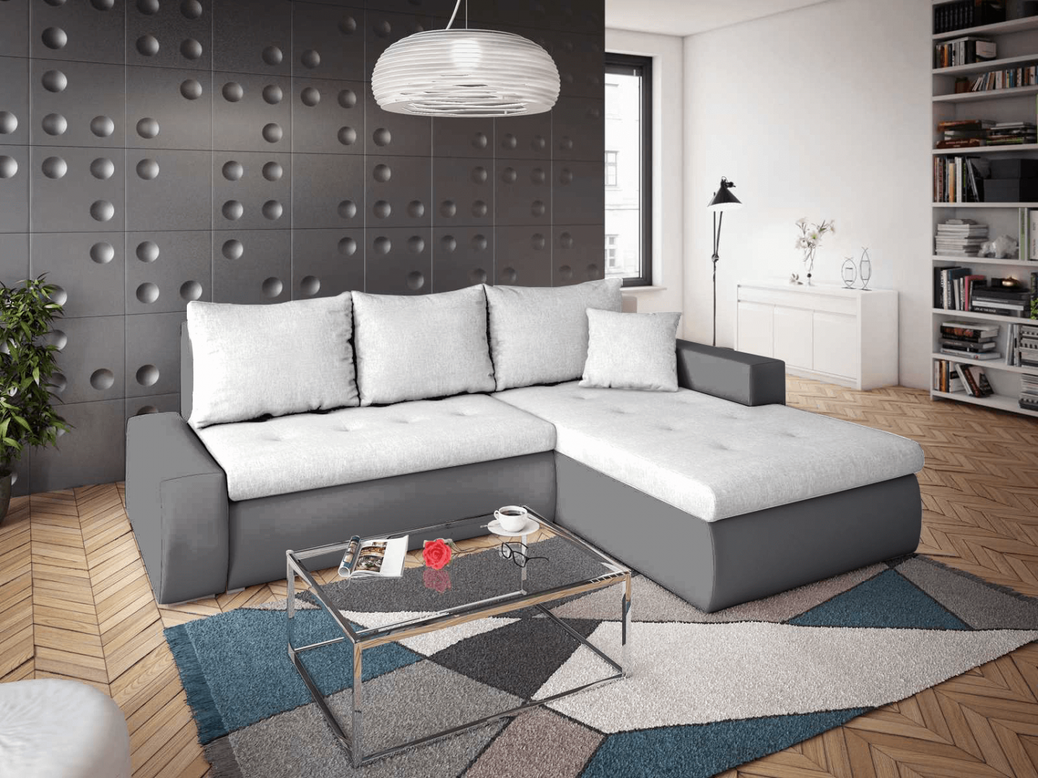 FRONTI Rohová rozkládací sedačka GRAND tmavěšedá-bílá - SAWANA 96 + SAWANA 00 17425