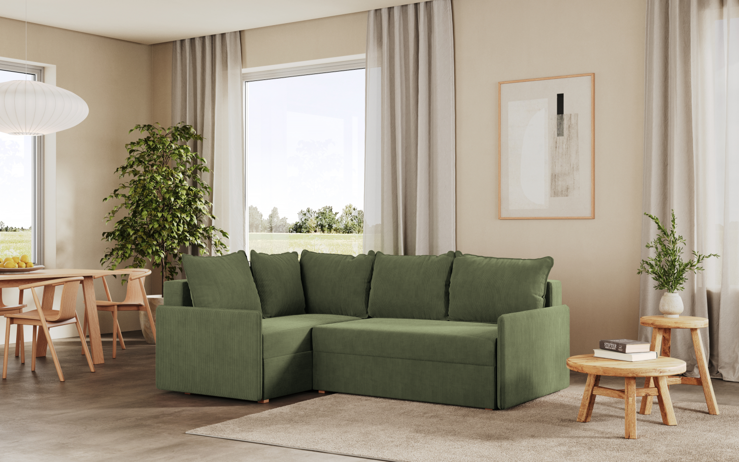 FRONTI Rohová rozkládací sedačka GRENADA zelená - CORD 205.19 17809