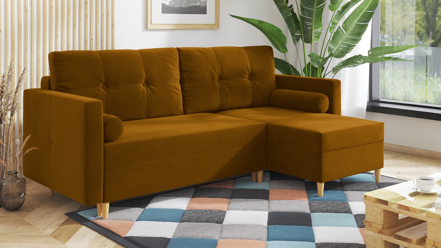 FRONTI Rohová rozkládací sedačka HARALD hořčicová - MONOLITH 48 7954
