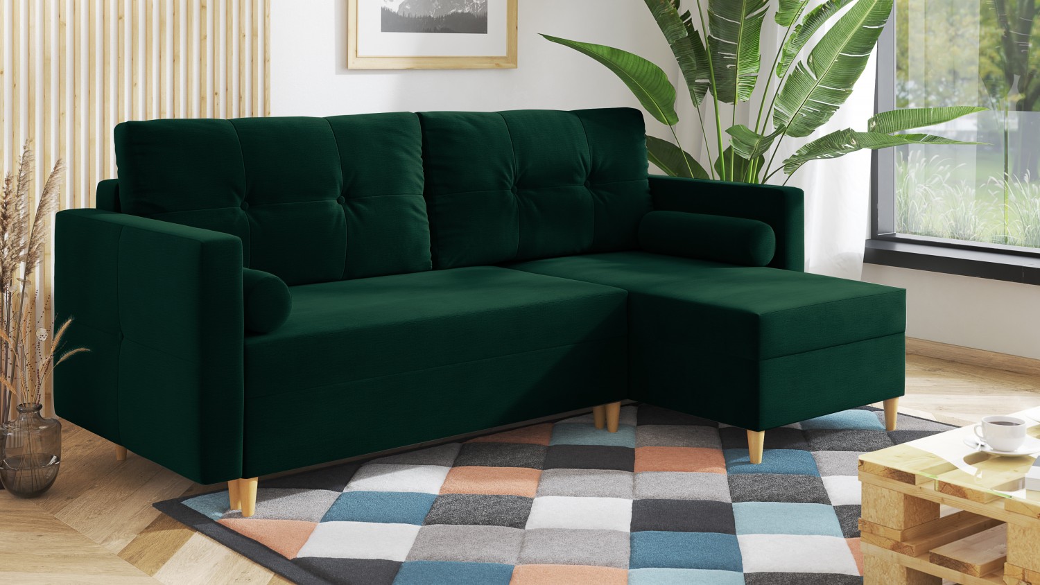 FRONTI Rohová rozkládací sedačka HARALD zelená - MONOLITH 37 7953