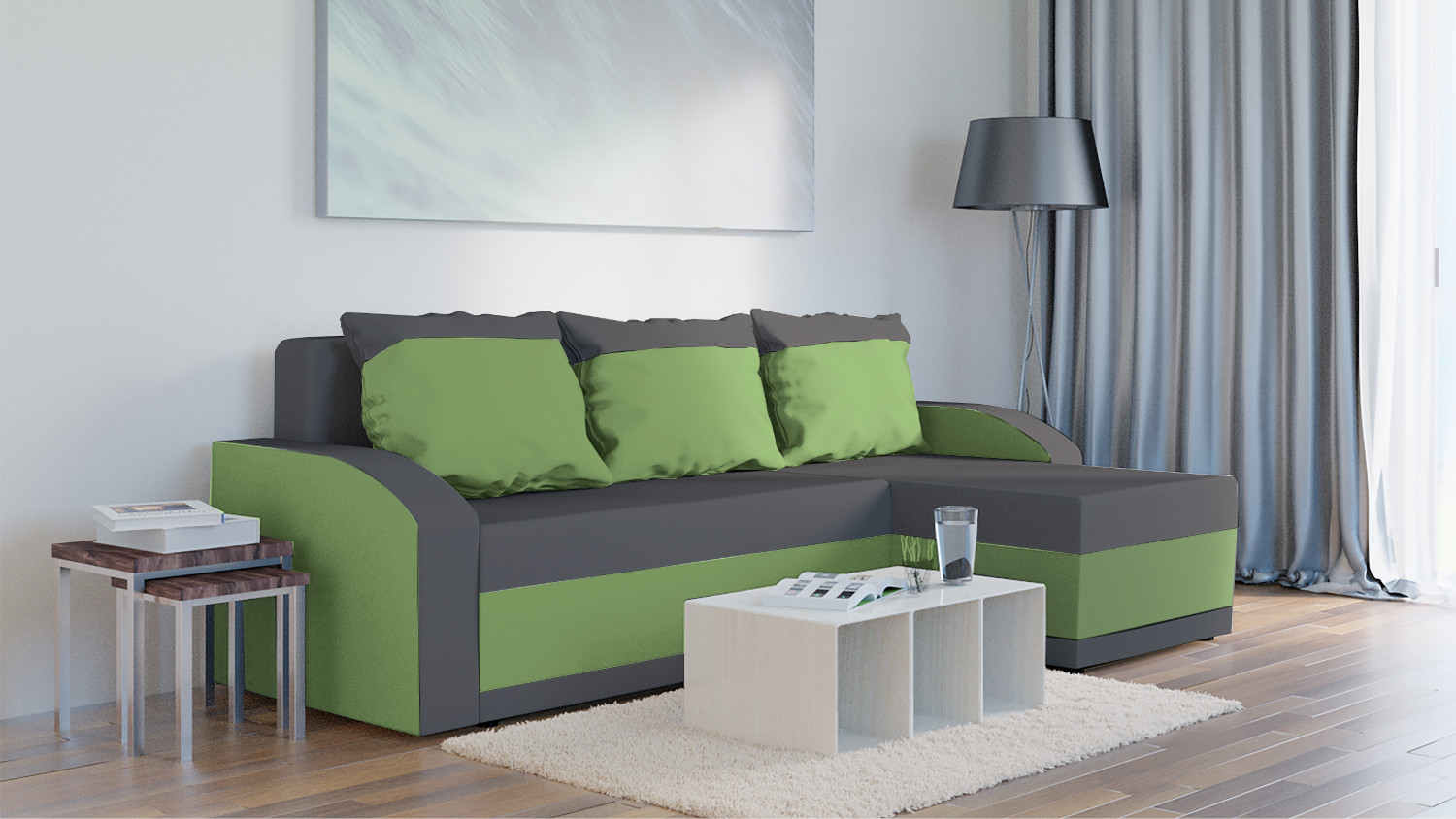 FRONTI Rohová rozkládací sedačka HARPER světlešedá-zelená 3157