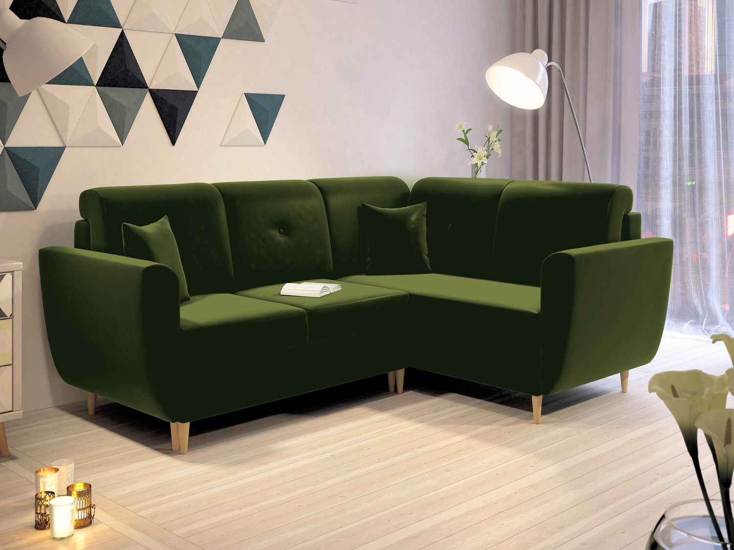 FRONTI Rohová rozkládací sedačka HILDA Zelená - MONOLITH 38 6485