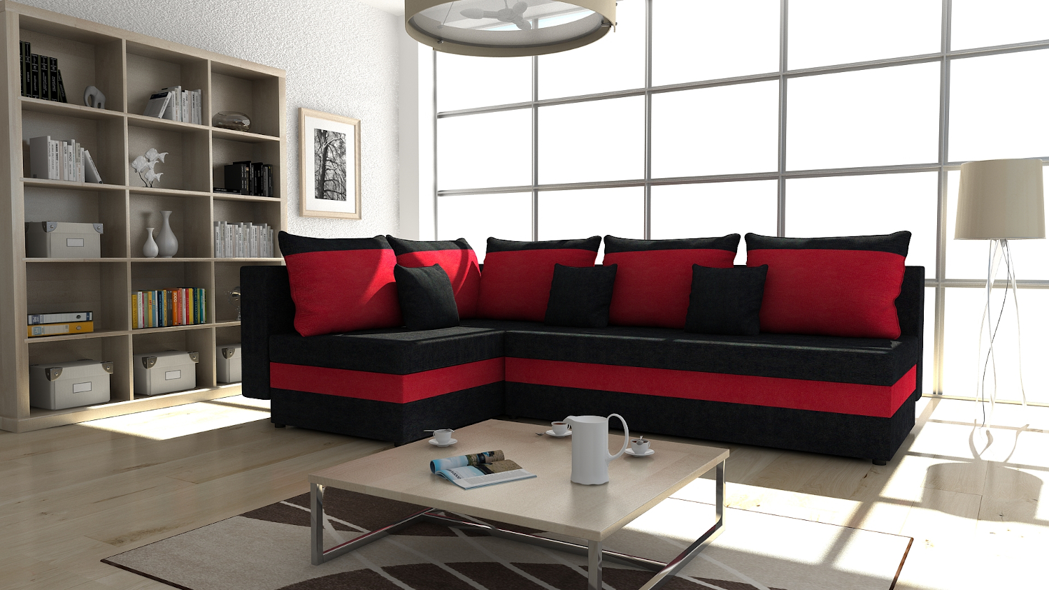 FRONTI Rohová rozkládací sedačka IRWIN černo-červená 3162