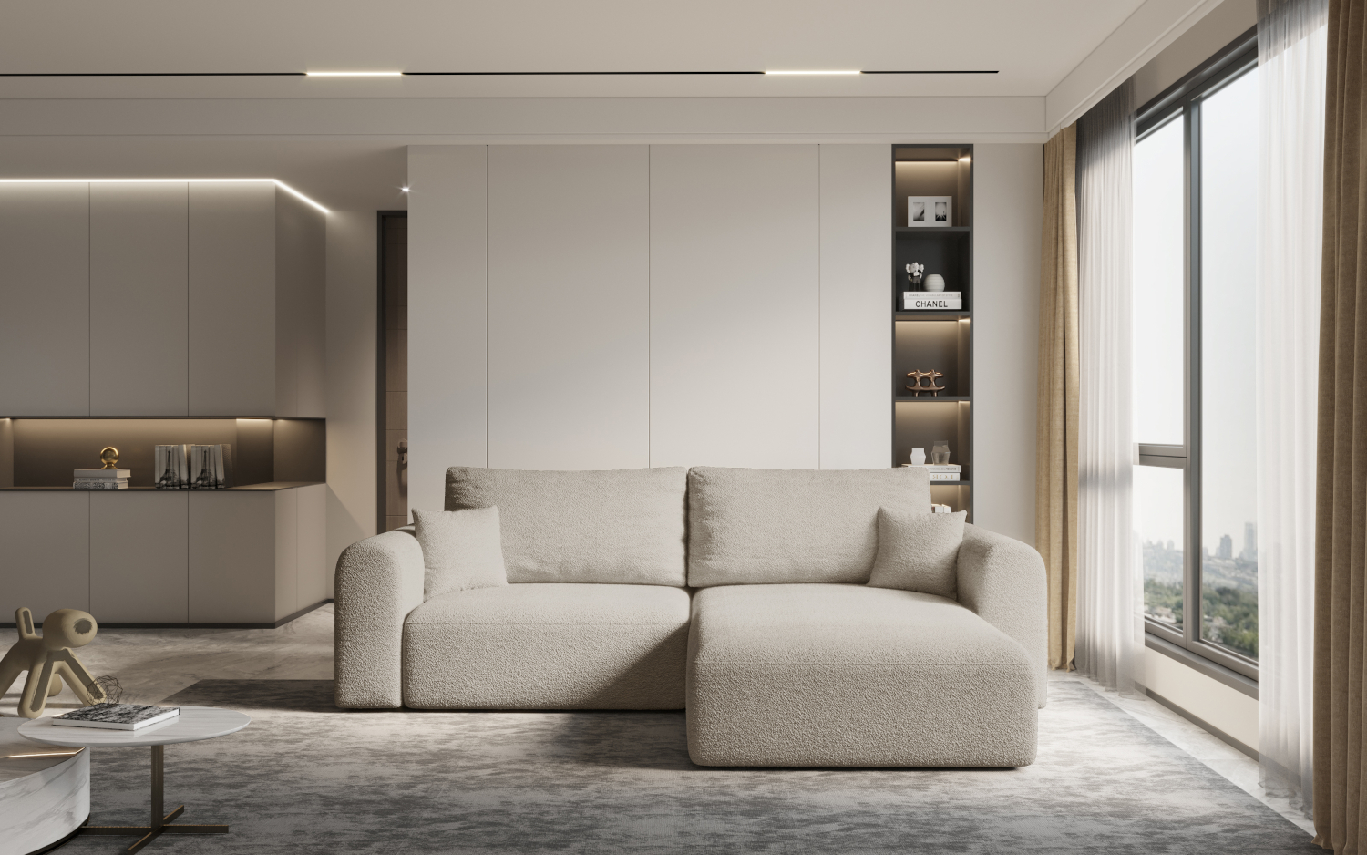 Rohová rozkládací sedačka KARO - Stylové a praktické řešení pro váš obývací pokoj Rohová rozkládací pohovka KARO přináší do vašeho domova dokonalou kombinaci elegantního designu a maximální funkčnosti. Díky moderním, čistým liniím a promyšlené konstrukci se stane dominantou každého interiéru, ať už preferujete minimalistický styl nebo útulnější atmosféru. Pohovka je navržena tak, aby vám poskytla ideální místo k relaxaci během dne, a večer se snadno proměnila v pohodlné lůžko pro hosty. Pohovka se rozkládá jednoduchým vytažením spodní části, což vám ušetří čas i námahu. Součástí je také integrovaný úložný prostor, který je ideální pro uschování ložního prádla, dek nebo sezónního oblečení, a pomůže vám tak udržet v obývacím pokoji dokonalý pořádek. Vyberte si perfektní pohovku přesně podle vašich představ Aby se pohovka KARO dokonale přizpůsobila vašemu vkusu a interiéru, nabízíme ji ve dvou kvalitních a odolných potahových látkách: Abriamo a Castel. Látka Abriamo je příjemná na dotek, s výraznou texturou, která dodá pohovce moderní a útulný vzhled. Látka Castel naopak nabízí hladší, sametový povrch, který působí luxusně a elegantně. Kromě výběru materiálu si můžete zvolit i jednu ze sedmi barevných variant, od neutrálních tónů, jako je krémová nebo šedá, až po výraznější odstíny, například modrou nebo zelenou. S pohovkou KARO získáte nejen stylový, ale i praktický kus nábytku, který splní všechny vaše požadavky na komfort a design. UPOZORNĚNÍ: U tohoto produktu vyžadujeme platbu předem. NELZE objednat na dobírku. PROVEDENÍ Sedák pohovky vybaven vlnovými pružinami Objemný úložný prostor Opěrné polštáře se zipem + 2 dekorativní Látka Abriamo Funkce spaní ROZMĚRY Funkce spaní -198x122 cm Hloubka - 165 cm Hloubka sedáku - 81 cm Šířka - 248 cm Výška - 79 cm Výška sedu - 37 cm Šířka prodloužené části - 106 cm Rozměrová tolerance +/- 3 cm.