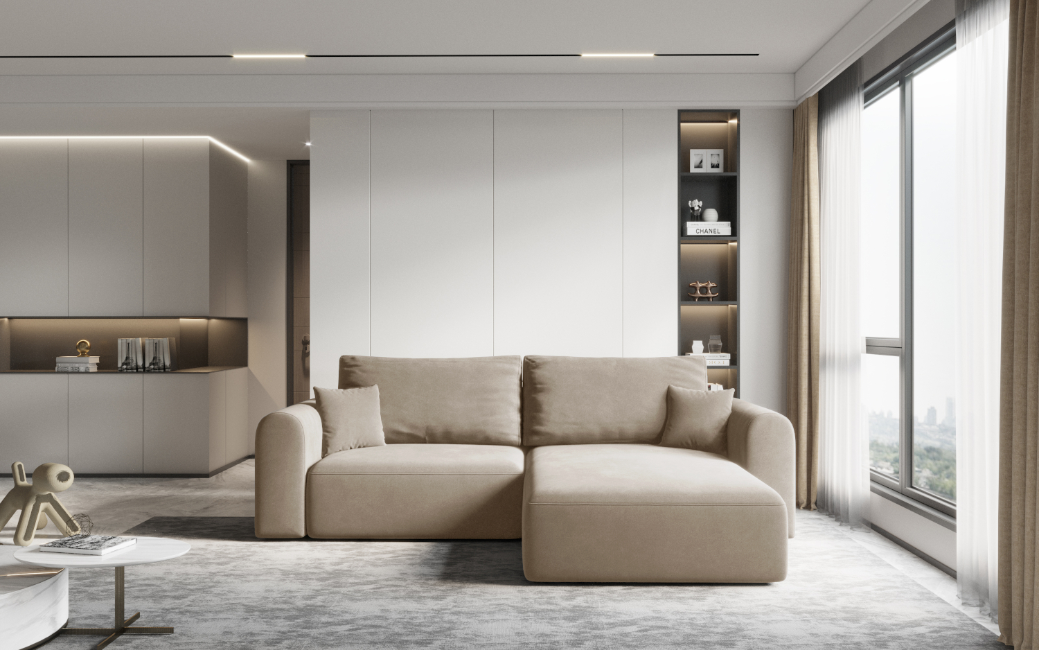 Rohová rozkládací sedačka KARO - Stylové a praktické řešení pro váš obývací pokoj Rohová rozkládací pohovka KARO přináší do vašeho domova dokonalou kombinaci elegantního designu a maximální funkčnosti. Díky moderním, čistým liniím a promyšlené konstrukci se stane dominantou každého interiéru, ať už preferujete minimalistický styl nebo útulnější atmosféru. Pohovka je navržena tak, aby vám poskytla ideální místo k relaxaci během dne, a večer se snadno proměnila v pohodlné lůžko pro hosty. Pohovka se rozkládá jednoduchým vytažením spodní části, což vám ušetří čas i námahu. Součástí je také integrovaný úložný prostor, který je ideální pro uschování ložního prádla, dek nebo sezónního oblečení, a pomůže vám tak udržet v obývacím pokoji dokonalý pořádek. Vyberte si perfektní pohovku přesně podle vašich představ Aby se pohovka KARO dokonale přizpůsobila vašemu vkusu a interiéru, nabízíme ji ve dvou kvalitních a odolných potahových látkách: Abriamo a Castel. Látka Abriamo je příjemná na dotek, s výraznou texturou, která dodá pohovce moderní a útulný vzhled. Látka Castel naopak nabízí hladší, sametový povrch, který působí luxusně a elegantně. Kromě výběru materiálu si můžete zvolit i jednu ze sedmi barevných variant, od neutrálních tónů, jako je krémová nebo šedá, až po výraznější odstíny, například modrou nebo zelenou. S pohovkou KARO získáte nejen stylový, ale i praktický kus nábytku, který splní všechny vaše požadavky na komfort a design. UPOZORNĚNÍ: U tohoto produktu vyžadujeme platbu předem. NELZE objednat na dobírku. PROVEDENÍ Sedák pohovky vybaven vlnovými pružinami Objemný úložný prostor Opěrné polštáře se zipem + 2 dekorativní Látka Castel Funkce spaní ROZMĚRY Funkce spaní -198x122 cm Hloubka - 165 cm Hloubka sedáku - 81 cm Šířka - 248 cm Výška - 79 cm Výška sedu - 37 cm Šířka prodloužené části - 106 cm Rozměrová tolerance +/- 3 cm.