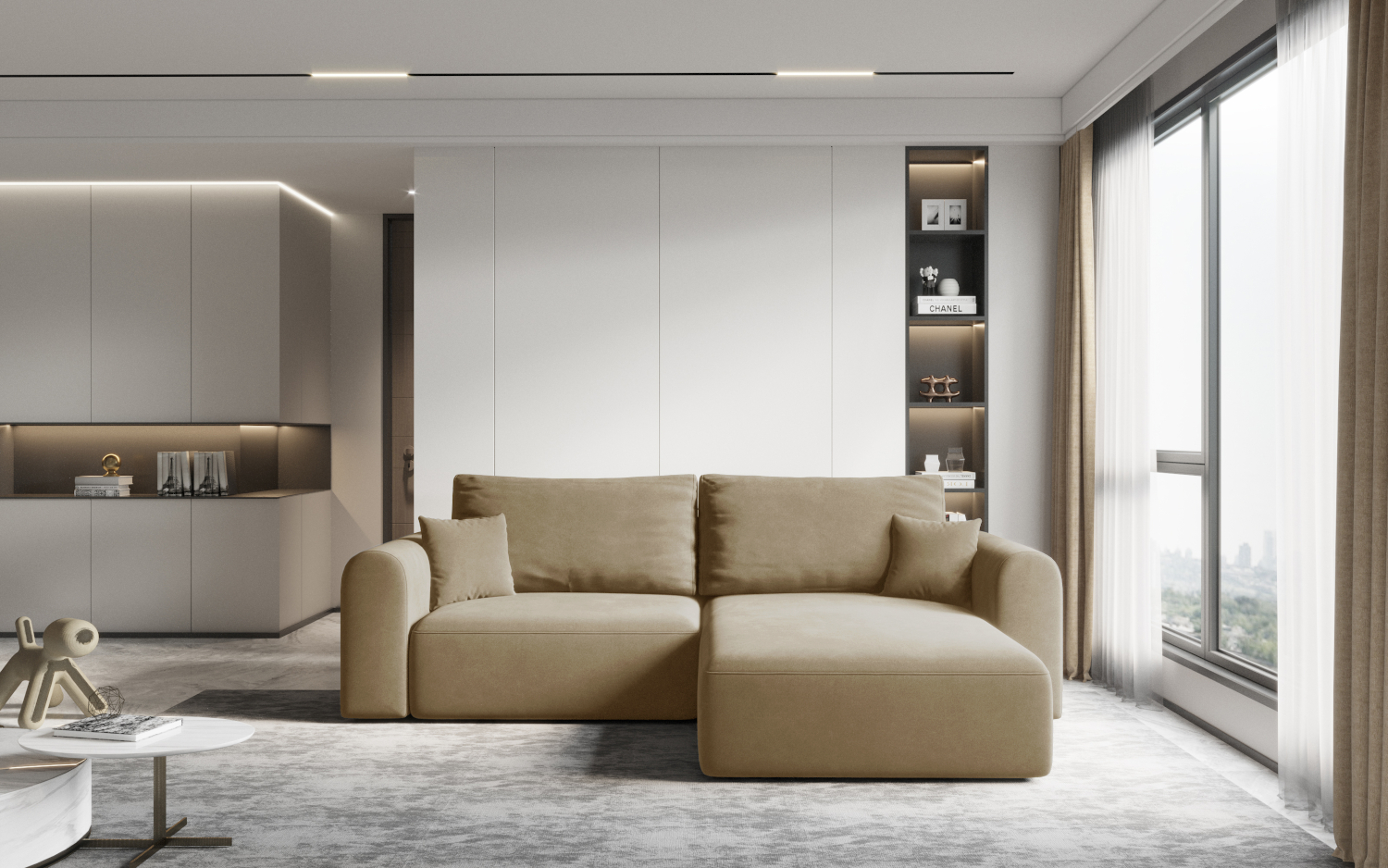 FRONTI Rohová rozkládací sedačka KARO - písková - Castel 48 22267