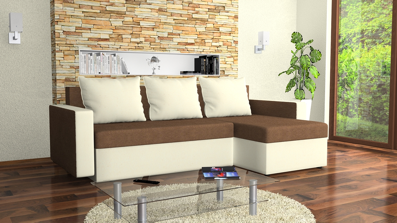 FRONTI Rohová rozkládací sedačka LAREDO světlehnědá-béžová 3176