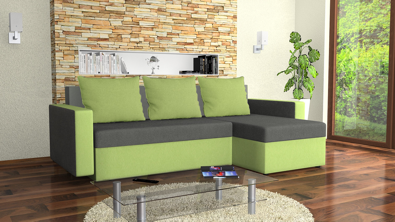 FRONTI Rohová rozkládací sedačka LAREDO světlešedá-zelená 3174