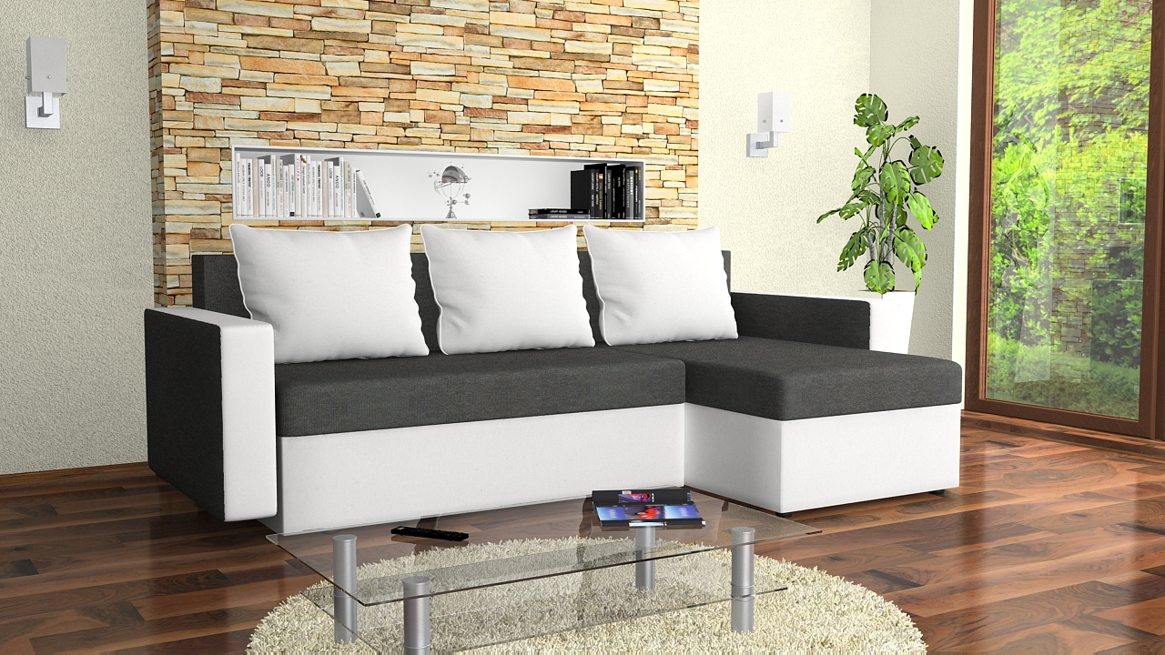 FRONTI Rohová rozkládací sedačka LAREDO tmavěšedá-bílá 3178