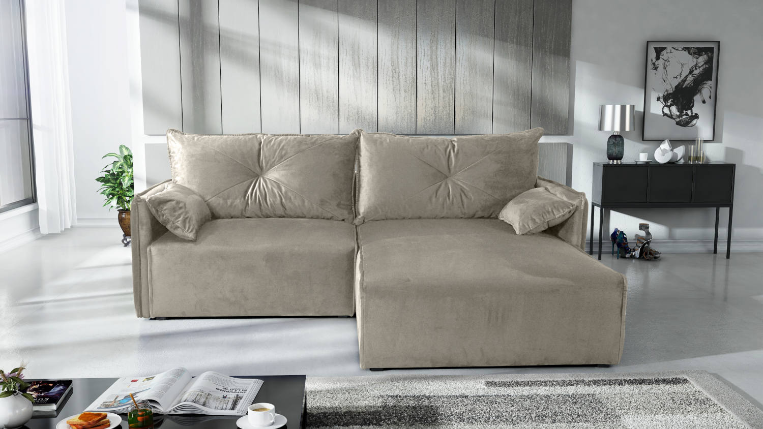 Rohová rozkládací sedačka LEON: Komfort, styl a praktičnost v jednom Sedačka LEON je perfektní volbou pro ty, kdo hledají spojení pohodlí a moderního designu. Její elegantní vzhled s prošívanými polštáři okamžitě upoutá pozornost a stane se dominantou každého obývacího pokoje. Díky svému rohovému provedení poskytuje dostatek místa pro relaxaci, ať už si chcete pohodlně sednout k filmu nebo si jen tak odpočinout s knihou. Sedačka je čalouněna jemnou, na dotek příjemnou sametovou látkou, která dodává pocit luxusu a zároveň je velmi odolná. Vybírat můžete z celkem 11 barevných variant, což vám umožní snadno ji sladit s jakýmkoliv interiérem. Prostor pro hosty i další úložný prostor Praktičnost této sedačky oceníte především, pokud často hostíte přátele nebo rodinu. Díky rozkládacímu mechanismu ji snadno a rychle proměníte v pohodlné lůžko o rozměrech 200 x 110 cm, které poskytne plnohodnotné místo pro přespání. Vnitřní úložný prostor pod sedákem je ideální pro uložení lůžkovin, dek nebo jiných sezónních věcí, čímž udržíte ve svém obývacím pokoji dokonalý pořádek. K sedačce si navíc můžete přikoupit i praktický taburet ve stejné barvě, který poslouží jako pohodlná podnožka nebo jako další místo k sezení. UPOZORNĚNÍ: U tohoto produktu vyžadujeme platbu předem. NELZE objednat na dobírku. PROVEDENÍ Funkce spaní 110 x 200 cm Objemný úložný prostor na lůžkoviny Pohovka vyplněna vysokoelastickou čalounickou pěnou T2844 + čalounická výplň Owata 300g Vlnové pružiny v sedáku zvyšující pohodlí Potaženo jemnou sametovou látkou Royal Volba rohu pravý/levý Sedačka obsahuje 2 velké polštáře a 2 malé dekorační Možnost dokoupit taburet ve stejné barvě ROZMĚRY Šířka - 220 cm Hloubka - 179 cm Hloubka sedáku - 56 cm Výška sedu - 38 cm Výška - 85 cm Povrch spaní - 110 x 200 cm Rozměry taburetu - 100 x 98 x 38 cm Rozměrová tolerance +/- 3 cm.