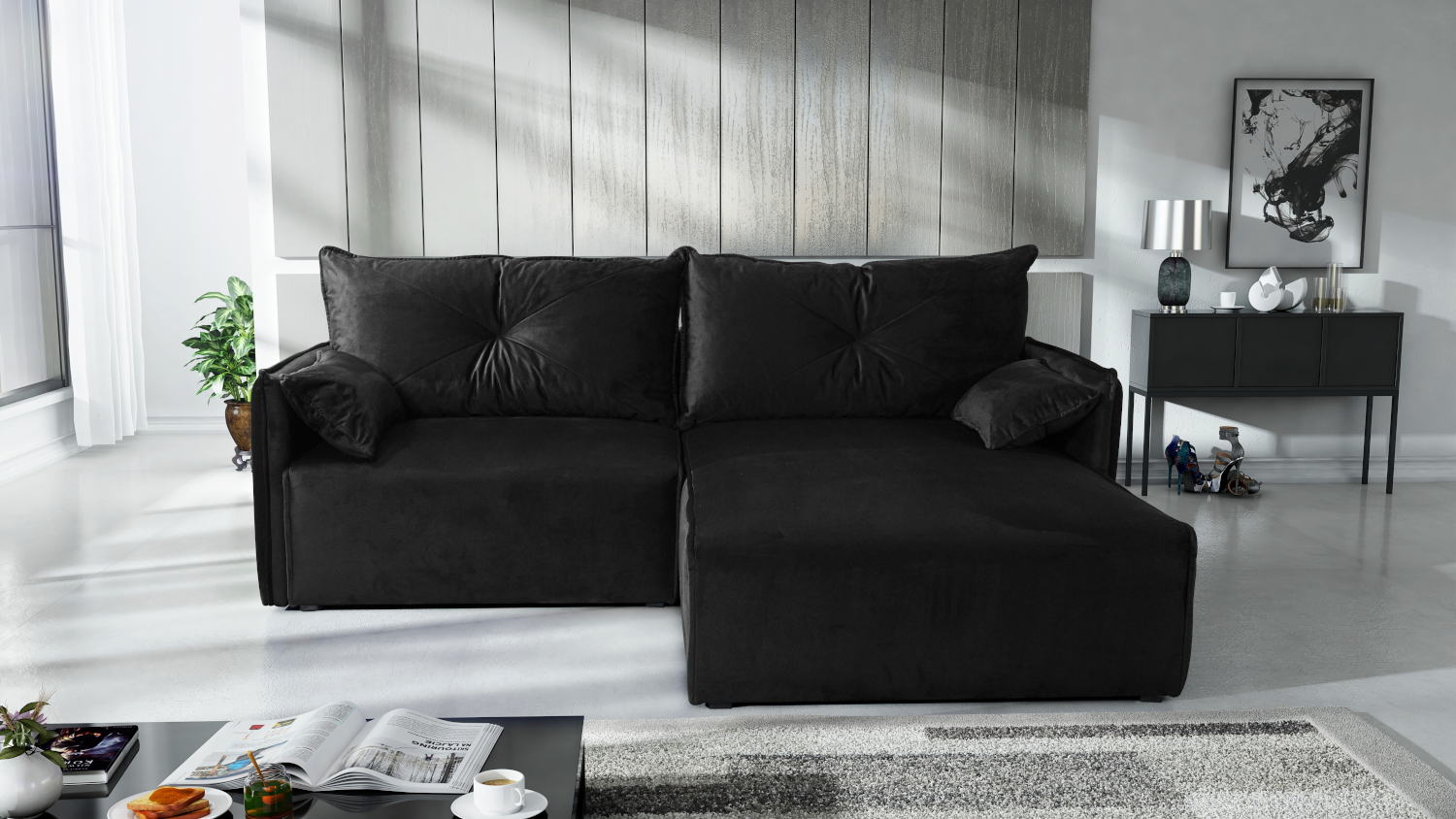 FRONTI Rohová rozkládací sedačka LEON 1 - černá 22328