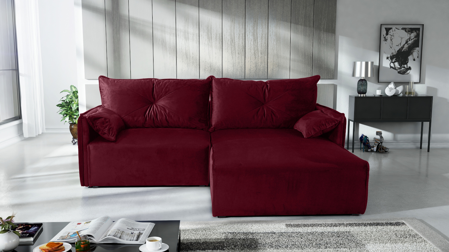 Rohová rozkládací sedačka LEON: Komfort, styl a praktičnost v jednom Sedačka LEON je perfektní volbou pro ty, kdo hledají spojení pohodlí a moderního designu. Její elegantní vzhled s prošívanými polštáři okamžitě upoutá pozornost a stane se dominantou každého obývacího pokoje. Díky svému rohovému provedení poskytuje dostatek místa pro relaxaci, ať už si chcete pohodlně sednout k filmu nebo si jen tak odpočinout s knihou. Sedačka je čalouněna jemnou, na dotek příjemnou sametovou látkou, která dodává pocit luxusu a zároveň je velmi odolná. Vybírat můžete z celkem 11 barevných variant, což vám umožní snadno ji sladit s jakýmkoliv interiérem. Prostor pro hosty i další úložný prostor Praktičnost této sedačky oceníte především, pokud často hostíte přátele nebo rodinu. Díky rozkládacímu mechanismu ji snadno a rychle proměníte v pohodlné lůžko o rozměrech 200 x 110 cm, které poskytne plnohodnotné místo pro přespání. Vnitřní úložný prostor pod sedákem je ideální pro uložení lůžkovin, dek nebo jiných sezónních věcí, čímž udržíte ve svém obývacím pokoji dokonalý pořádek. K sedačce si navíc můžete přikoupit i praktický taburet ve stejné barvě, který poslouží jako pohodlná podnožka nebo jako další místo k sezení. UPOZORNĚNÍ: U tohoto produktu vyžadujeme platbu předem. NELZE objednat na dobírku. PROVEDENÍ Funkce spaní 110 x 200 cm Objemný úložný prostor na lůžkoviny Pohovka vyplněna vysokoelastickou čalounickou pěnou T2844 + čalounická výplň Owata 300g Vlnové pružiny v sedáku zvyšující pohodlí Potaženo jemnou sametovou látkou Royal Volba rohu pravý/levý Sedačka obsahuje 2 velké polštáře a 2 malé dekorační Možnost dokoupit taburet ve stejné barvě ROZMĚRY Šířka - 220 cm Hloubka - 179 cm Hloubka sedáku - 56 cm Výška sedu - 38 cm Výška - 85 cm Povrch spaní - 110 x 200 cm Rozměry taburetu - 100 x 98 x 38 cm Rozměrová tolerance +/- 3 cm.