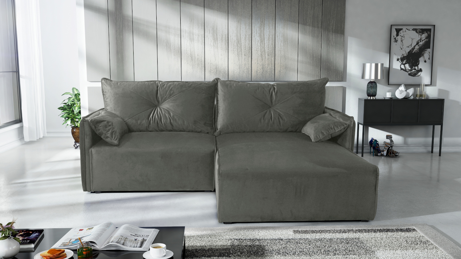 Rohová rozkládací sedačka LEON: Komfort, styl a praktičnost v jednom Sedačka LEON je perfektní volbou pro ty, kdo hledají spojení pohodlí a moderního designu. Její elegantní vzhled s prošívanými polštáři okamžitě upoutá pozornost a stane se dominantou každého obývacího pokoje. Díky svému rohovému provedení poskytuje dostatek místa pro relaxaci, ať už si chcete pohodlně sednout k filmu nebo si jen tak odpočinout s knihou. Sedačka je čalouněna jemnou, na dotek příjemnou sametovou látkou, která dodává pocit luxusu a zároveň je velmi odolná. Vybírat můžete z celkem 11 barevných variant, což vám umožní snadno ji sladit s jakýmkoliv interiérem. Prostor pro hosty i další úložný prostor Praktičnost této sedačky oceníte především, pokud často hostíte přátele nebo rodinu. Díky rozkládacímu mechanismu ji snadno a rychle proměníte v pohodlné lůžko o rozměrech 200 x 110 cm, které poskytne plnohodnotné místo pro přespání. Vnitřní úložný prostor pod sedákem je ideální pro uložení lůžkovin, dek nebo jiných sezónních věcí, čímž udržíte ve svém obývacím pokoji dokonalý pořádek. K sedačce si navíc můžete přikoupit i praktický taburet ve stejné barvě, který poslouží jako pohodlná podnožka nebo jako další místo k sezení. UPOZORNĚNÍ: U tohoto produktu vyžadujeme platbu předem. NELZE objednat na dobírku. PROVEDENÍ Funkce spaní 110 x 200 cm Objemný úložný prostor na lůžkoviny Pohovka vyplněna vysokoelastickou čalounickou pěnou T2844 + čalounická výplň Owata 300g Vlnové pružiny v sedáku zvyšující pohodlí Potaženo jemnou sametovou látkou Royal Volba rohu pravý/levý Sedačka obsahuje 2 velké polštáře a 2 malé dekorační Možnost dokoupit taburet ve stejné barvě ROZMĚRY Šířka - 220 cm Hloubka - 179 cm Hloubka sedáku - 56 cm Výška sedu - 38 cm Výška - 85 cm Povrch spaní - 110 x 200 cm Rozměry taburetu - 100 x 98 x 38 cm Rozměrová tolerance +/- 3 cm.