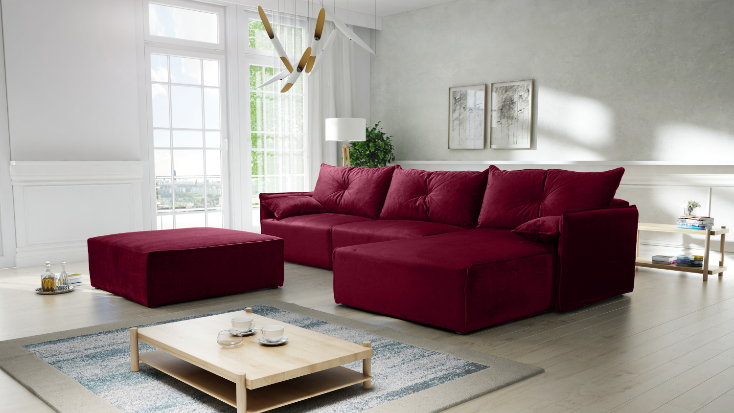 Rohová rozkládací sedačka LEON: Komfort, styl a praktičnost v jednom Sedačka LEON je perfektní volbou pro ty, kdo hledají spojení pohodlí a moderního designu. Její elegantní vzhled s prošívanými polštáři okamžitě upoutá pozornost a stane se dominantou každého obývacího pokoje. Díky svému rohovému provedení poskytuje dostatek místa pro relaxaci, ať už si chcete pohodlně sednout k filmu nebo si jen tak odpočinout s knihou. Sedačka je čalouněna jemnou, na dotek příjemnou sametovou látkou, která dodává pocit luxusu a zároveň je velmi odolná. Vybírat můžete z celkem 11 barevných variant, což vám umožní snadno ji sladit s jakýmkoliv interiérem. Prostor pro hosty i další úložný prostor Praktičnost této sedačky oceníte především, pokud často hostíte přátele nebo rodinu. Díky rozkládacímu mechanismu ji snadno a rychle proměníte v pohodlné lůžko o rozměrech 200 x 110 cm, které poskytne plnohodnotné místo pro přespání. Vnitřní úložný prostor pod sedákem je ideální pro uložení lůžkovin, dek nebo jiných sezónních věcí, čímž udržíte ve svém obývacím pokoji dokonalý pořádek. K sedačce si navíc můžete přikoupit i praktický taburet ve stejné barvě, který poslouží jako pohodlná podnožka nebo jako další místo k sezení. UPOZORNĚNÍ: U tohoto produktu vyžadujeme platbu předem. NELZE objednat na dobírku. PROVEDENÍ Funkce spaní 110 x 298 cm 2 objemné úložné prostory na lůžkoviny Pohovka vyplněna vysokoelastickou čalounickou pěnou T2844 + čalounická výplň Owata 300g Vlnové pružiny v sedáku zvyšující pohodlí Potaženo jemnou sametovou látkou Royal Volba rohu pravý/levý Sedačka obsahuje 2 velké polštáře a 2 malé dekorační Možnost dokoupit taburet ve stejné barvě ROZMĚRY Šířka - 318 cm Hloubka - 179 cm Hloubka sedáku - 56 cm Výška sedu - 38 cm Výška - 85 cm Povrch spaní - 110 x 298 cm Rozměry taburetu - 100 x 98 x 38 cm Rozměrová tolerance +/- 3 cm.