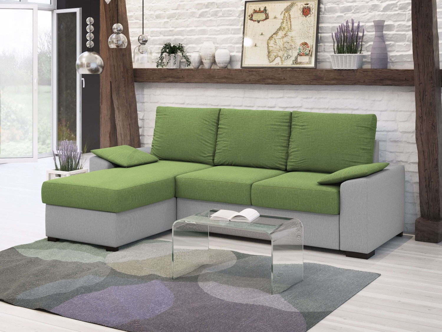 FRONTI Rohová rozkládací sedačka LOCUS zelená-šedá - SAWANA 31 + SAWANA 21 17553