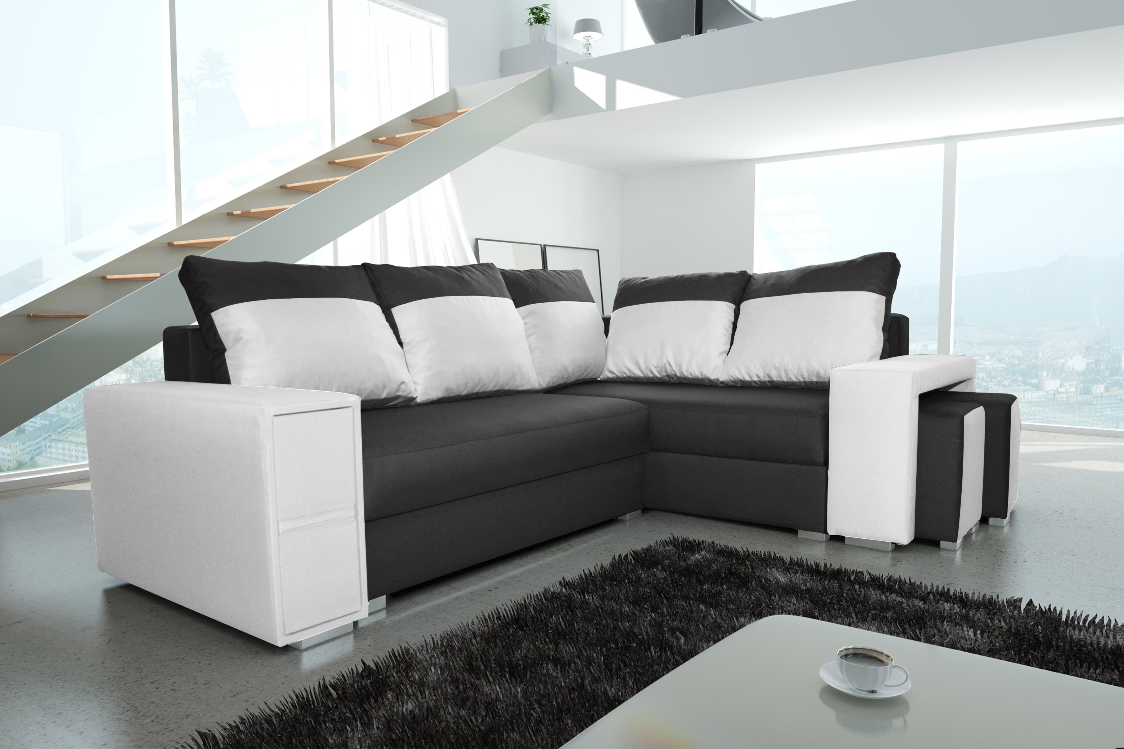 FRONTI Rohová rozkládací sedačka MADRYT tmavěšedá-bílá - SAWANA 96 + SAWANA 00 17685