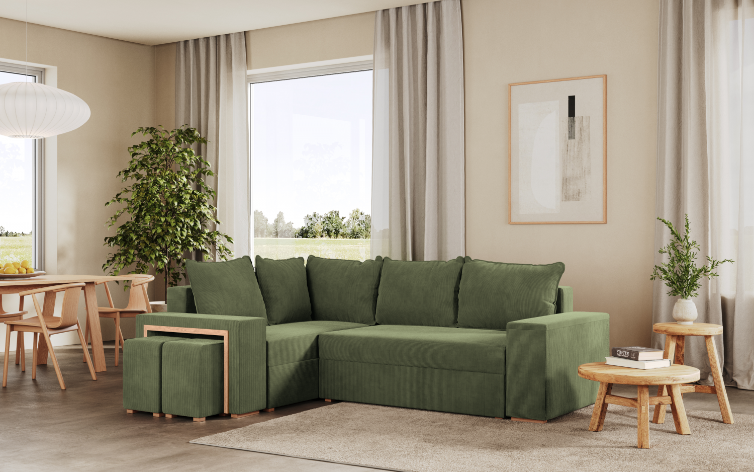 FRONTI Rohová rozkládací sedačka MALAGA zelená - CORD 205.19 17817