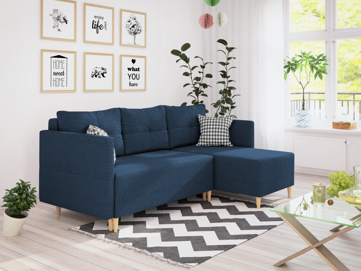 FRONTI Rohová rozkládací sedačka MALCOLM modrá - MALMO 79 8227