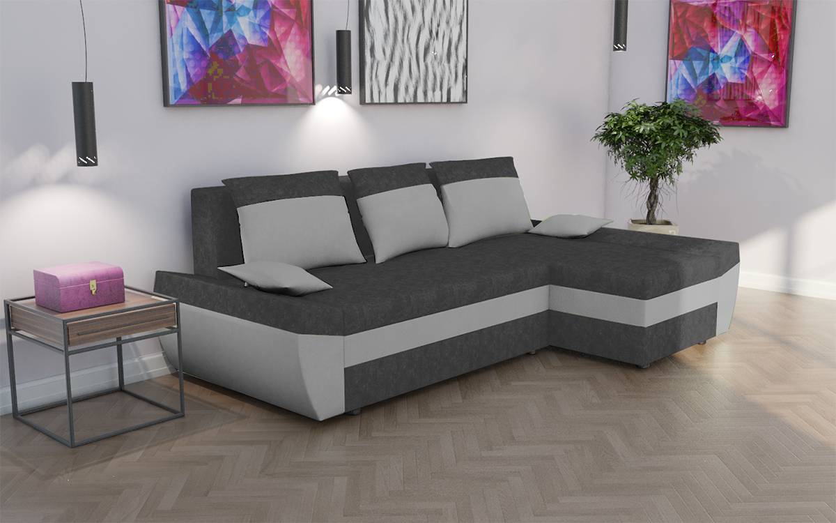 FRONTI Rohová rozkládací sedačka MARIO tmavěšedá-světlešedá 3199
