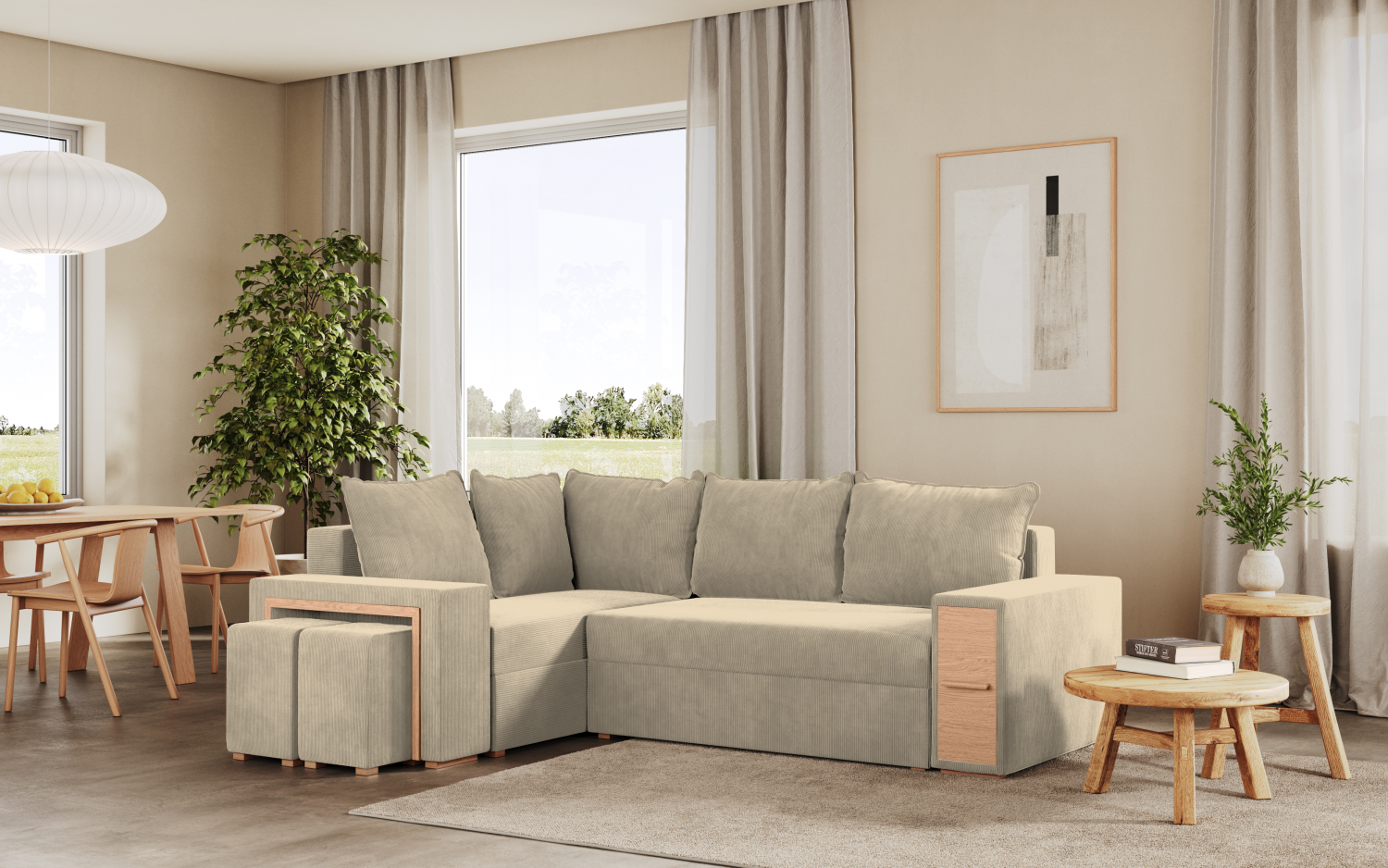 FRONTI Rohová rozkládací sedačka MAROLA béžová - CORD 205.14 17823