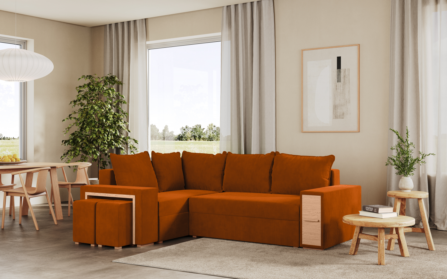FRONTI Rohová rozkládací sedačka MAROLA oranžová - CORD 205.11 17822