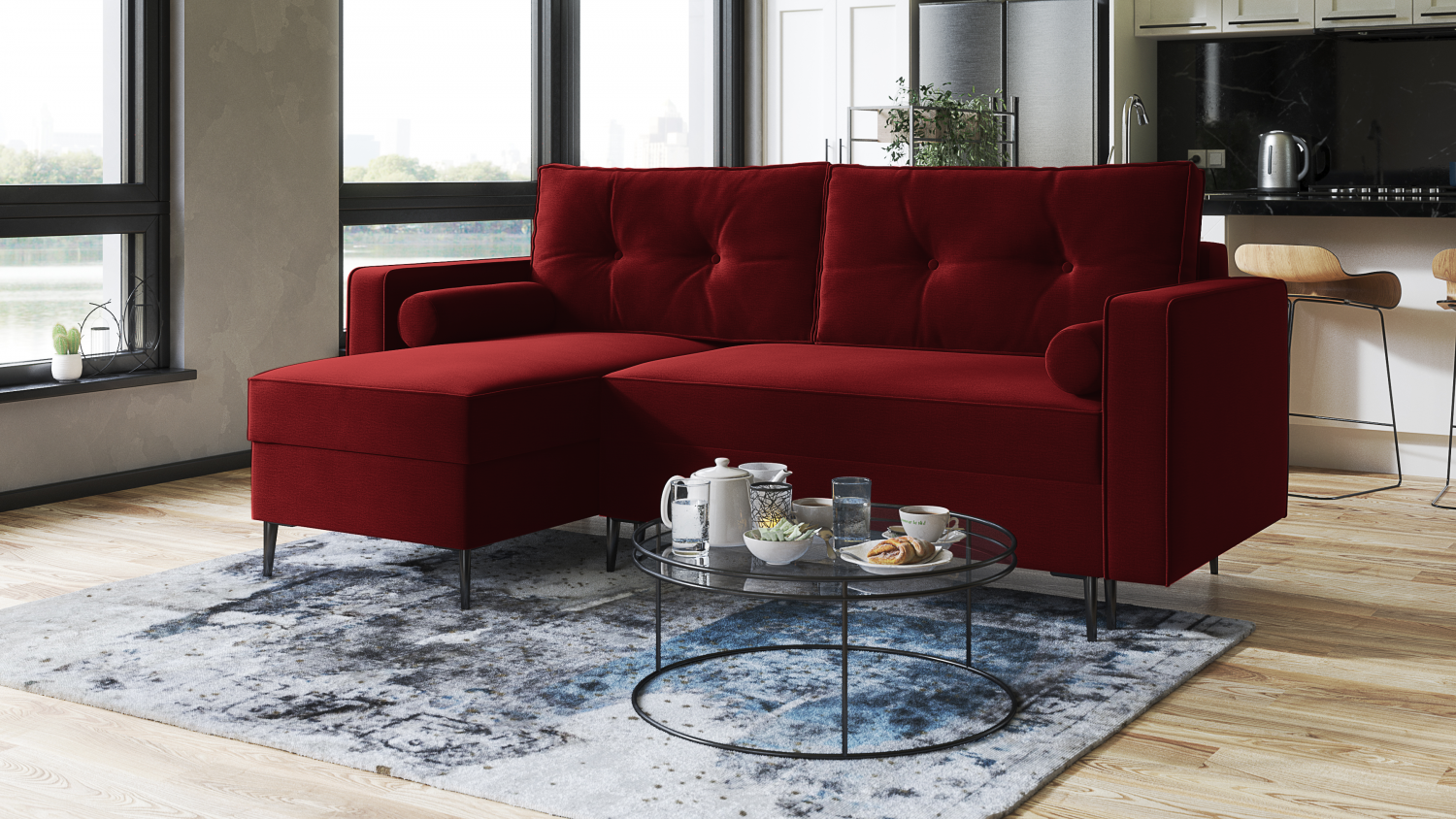 FRONTI Rohová rozkládací sedačka MARY červená - DREAM VELVET 202.10 9331