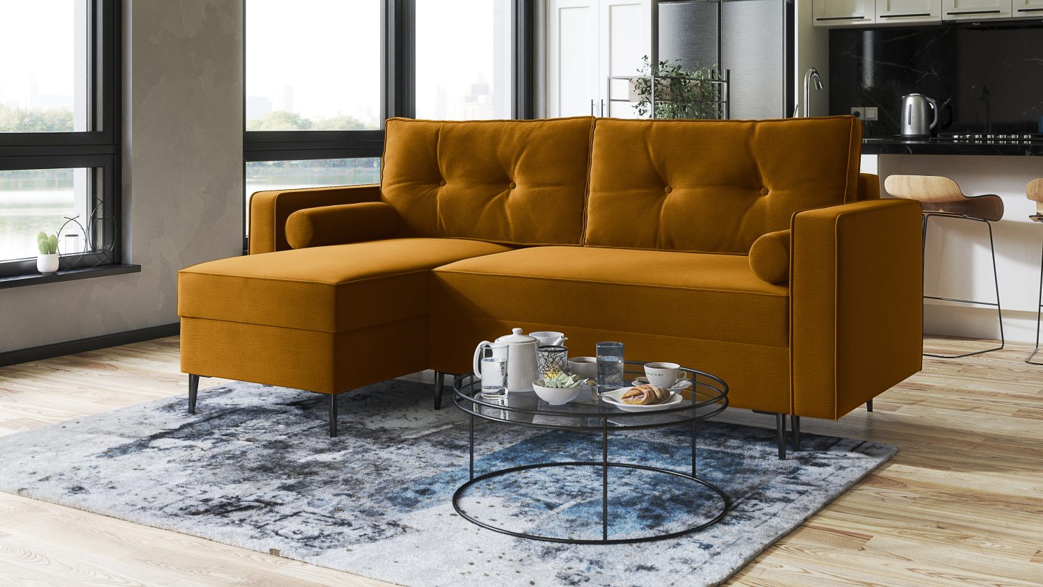 FRONTI Rohová rozkládací sedačka MARY hořčicová - MONOLITH 48 9337