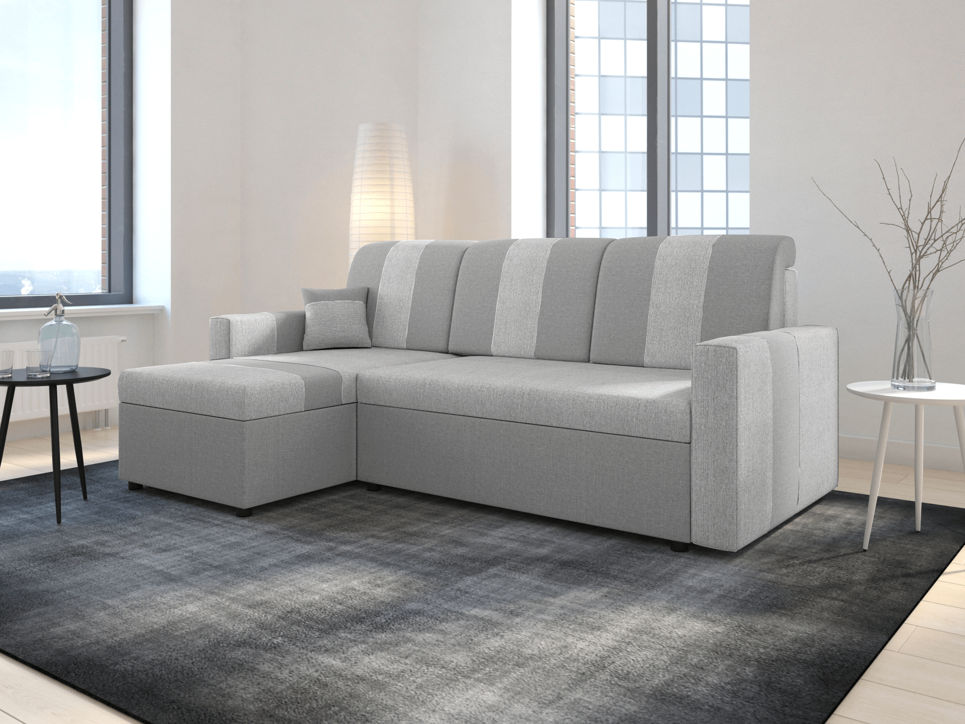 Rohová sedací souprava Lotos, světle šedá látka, levý roh