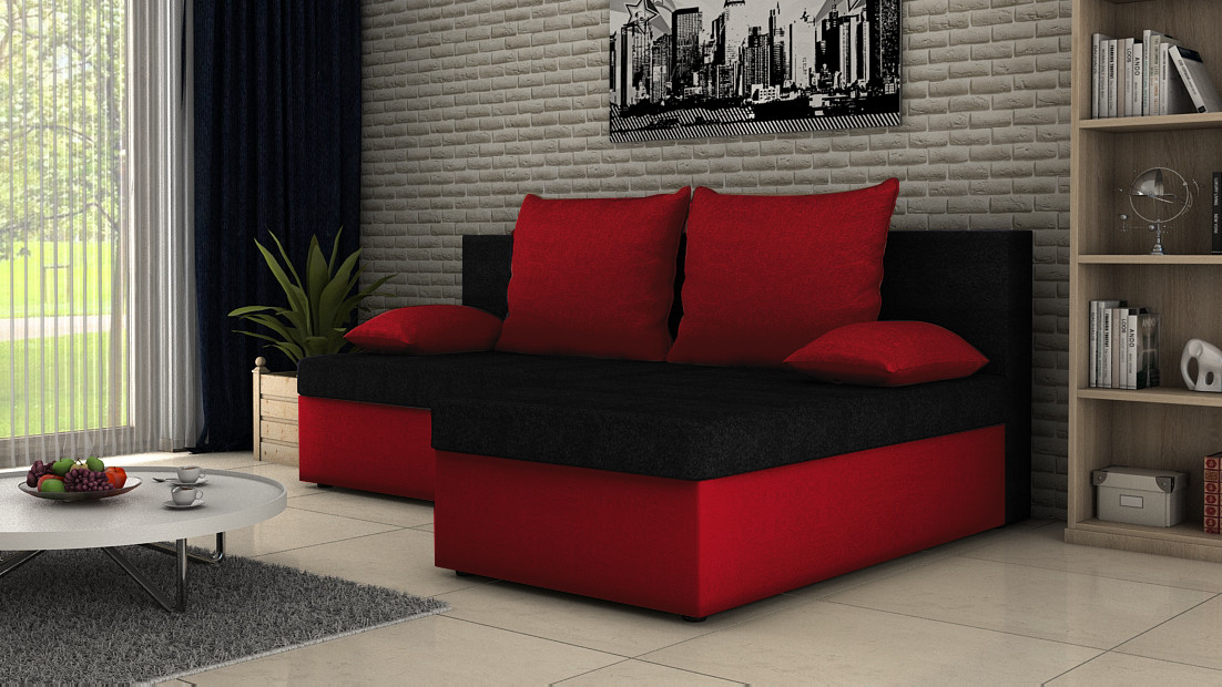FRONTI Rohová rozkládací sedačka OTIS černo-červená 3203