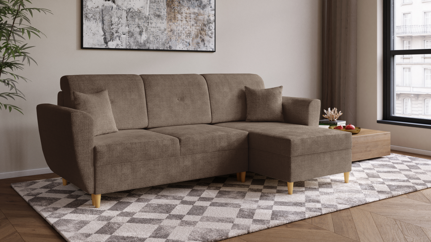 FRONTI Rohová rozkládací sedačka OTYLIA hnědá - CREMONA 24 - boucle látka 19650
