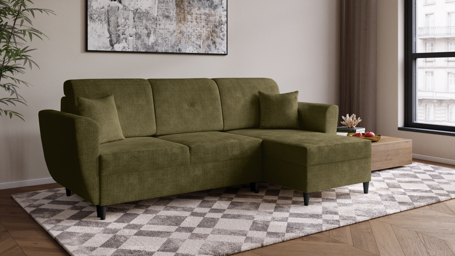 FRONTI Rohová rozkládací sedačka OTYLIA zelená - CREMONA 38 - boucle látka 19651