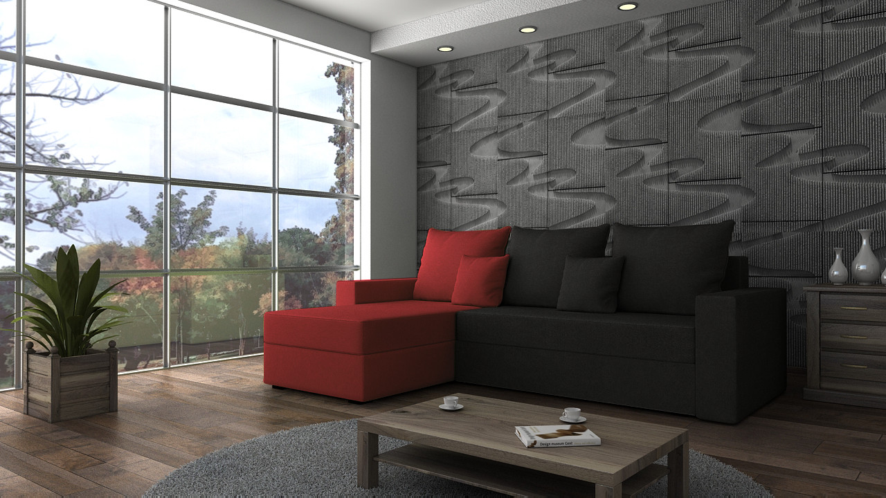 FRONTI Rohová rozkládací sedačka PARK černo-červená 3219