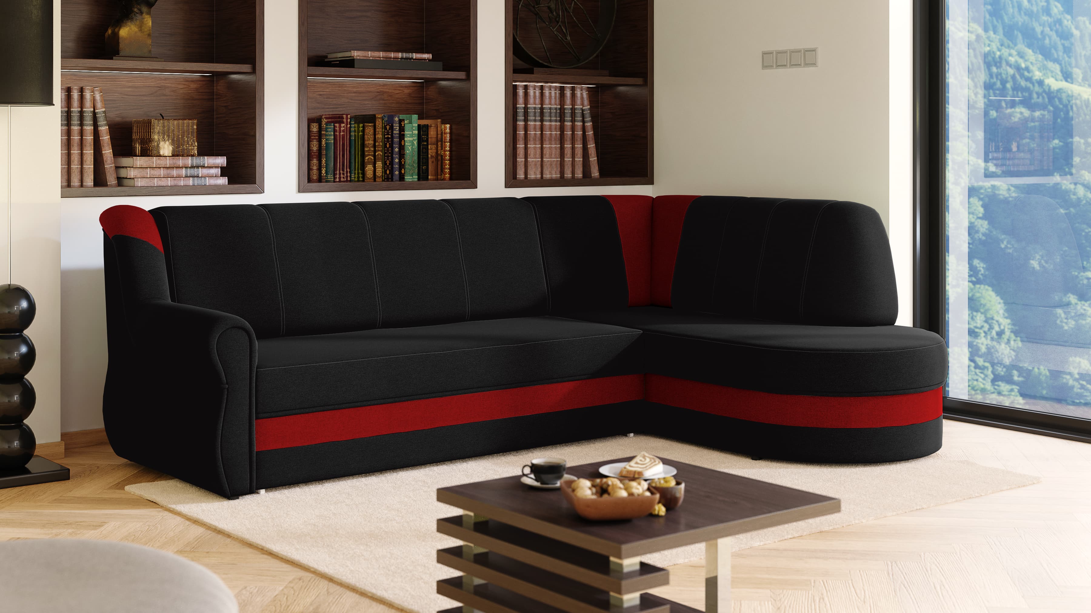 FRONTI Rohová rozkládací sedačka PRESTON černá-červená - SAWANA 14 + SAWANA 13 17591