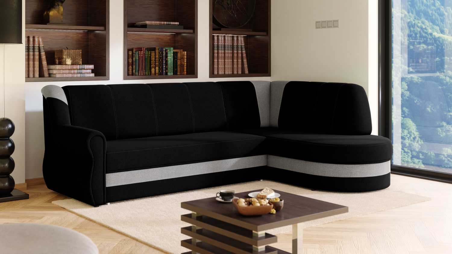 FRONTI Rohová rozkládací sedačka PRESTON černá-světlešedá - SAWANA 14 + SAWANA 84 9525