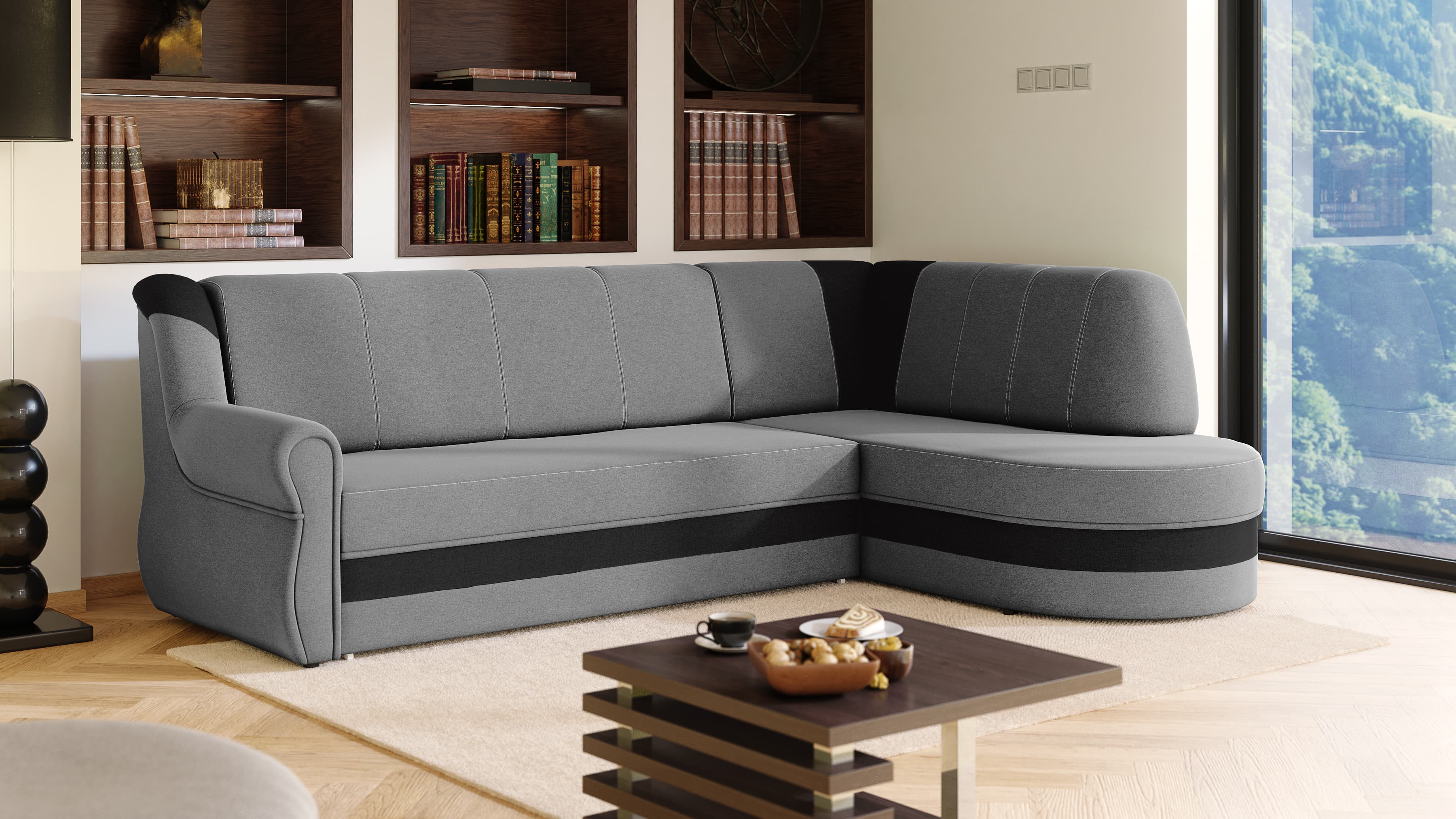 FRONTI Rohová rozkládací sedačka PRESTON světlešedá-černá - SAWANA 84 + SAWANA 14 17595