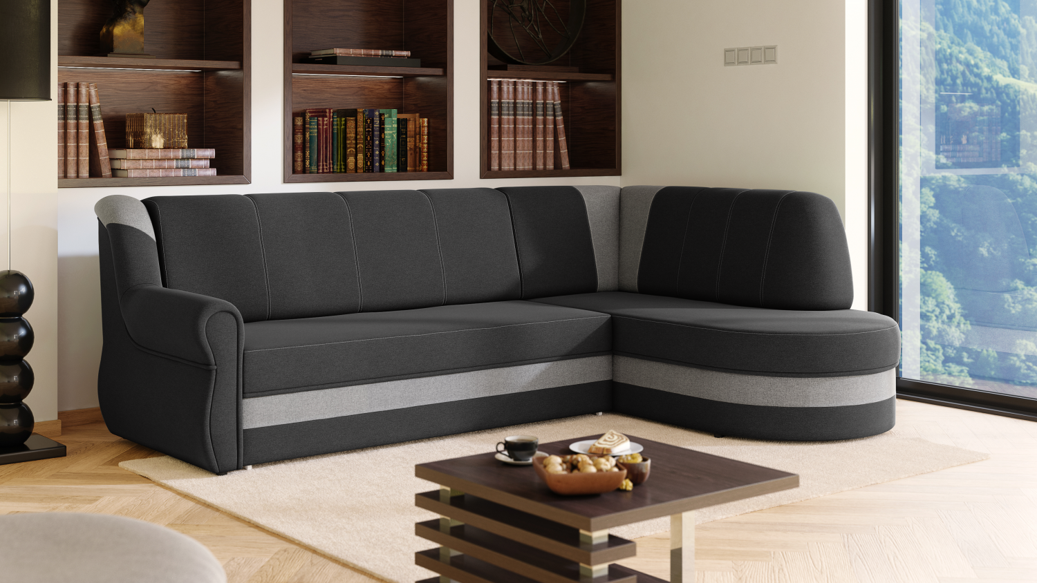 FRONTI Rohová rozkládací sedačka PRESTON tmavěšedá-světlešedá - SAWANA 96 + SAWANA 84 9529