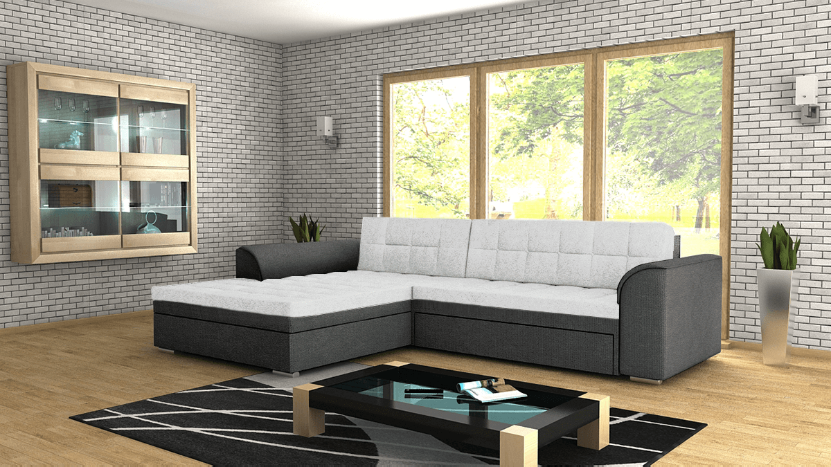 FRONTI Rohová rozkládací sedačka SERGIO bílo-tmavěšedá - SAWANA 00 + SAWANA 96 17495