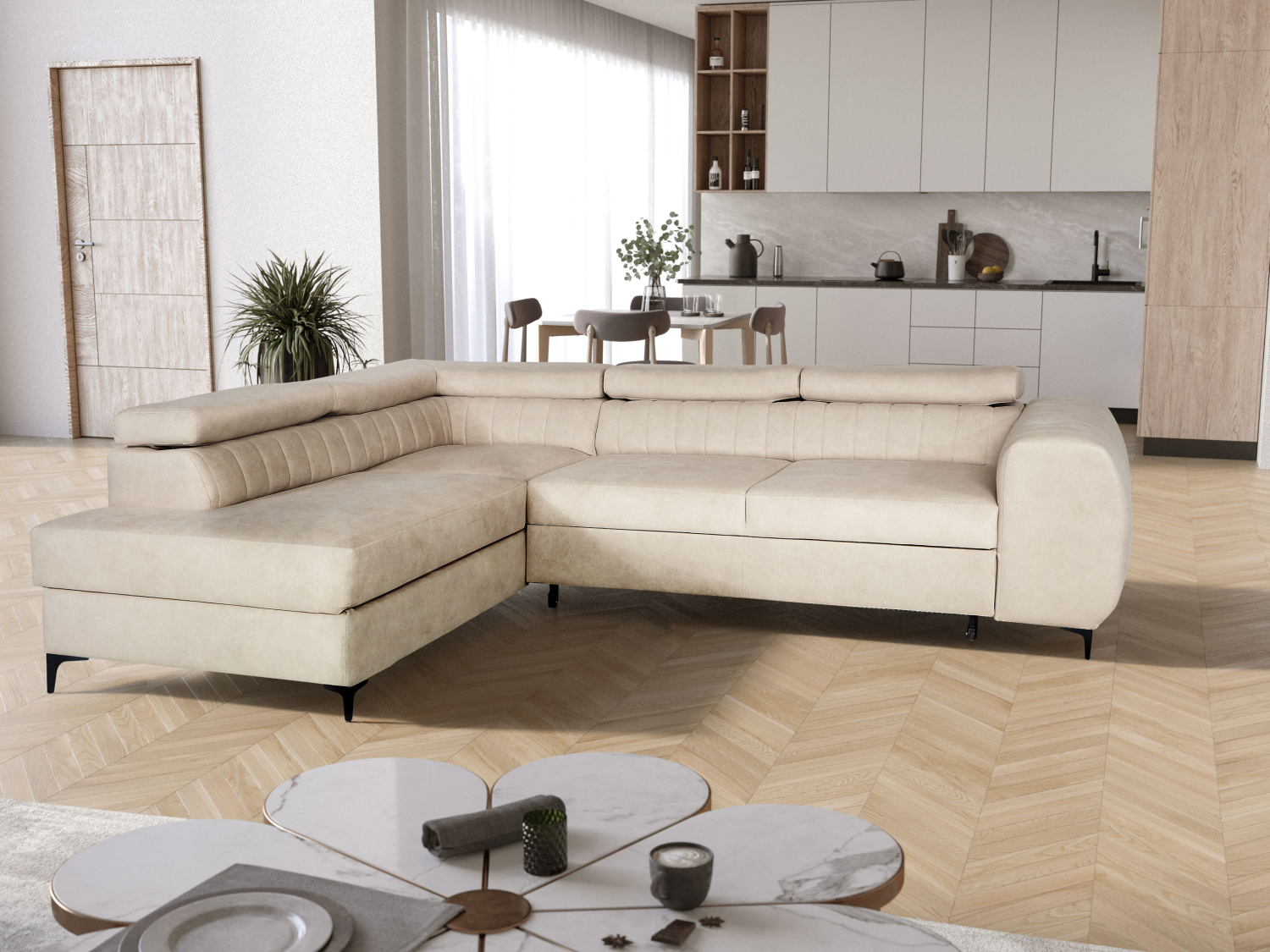 FRONTI Rohová rozkládací sedačka SEVIL béžová - CLOUD 03 20050