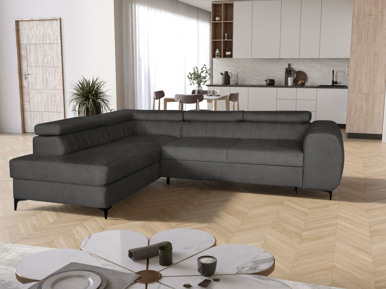 FRONTI Rohová rozkládací sedačka SEVIL tmavěšedá - CLOUD 97 16678