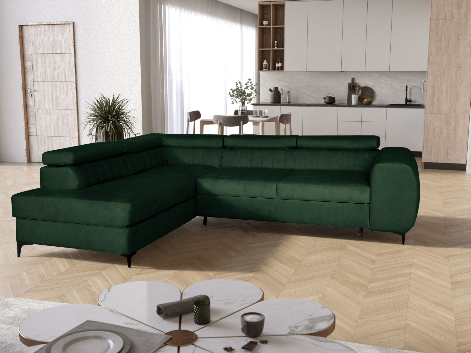 FRONTI Rohová rozkládací sedačka SEVIL tmavězelená - CLOUD 39 20051