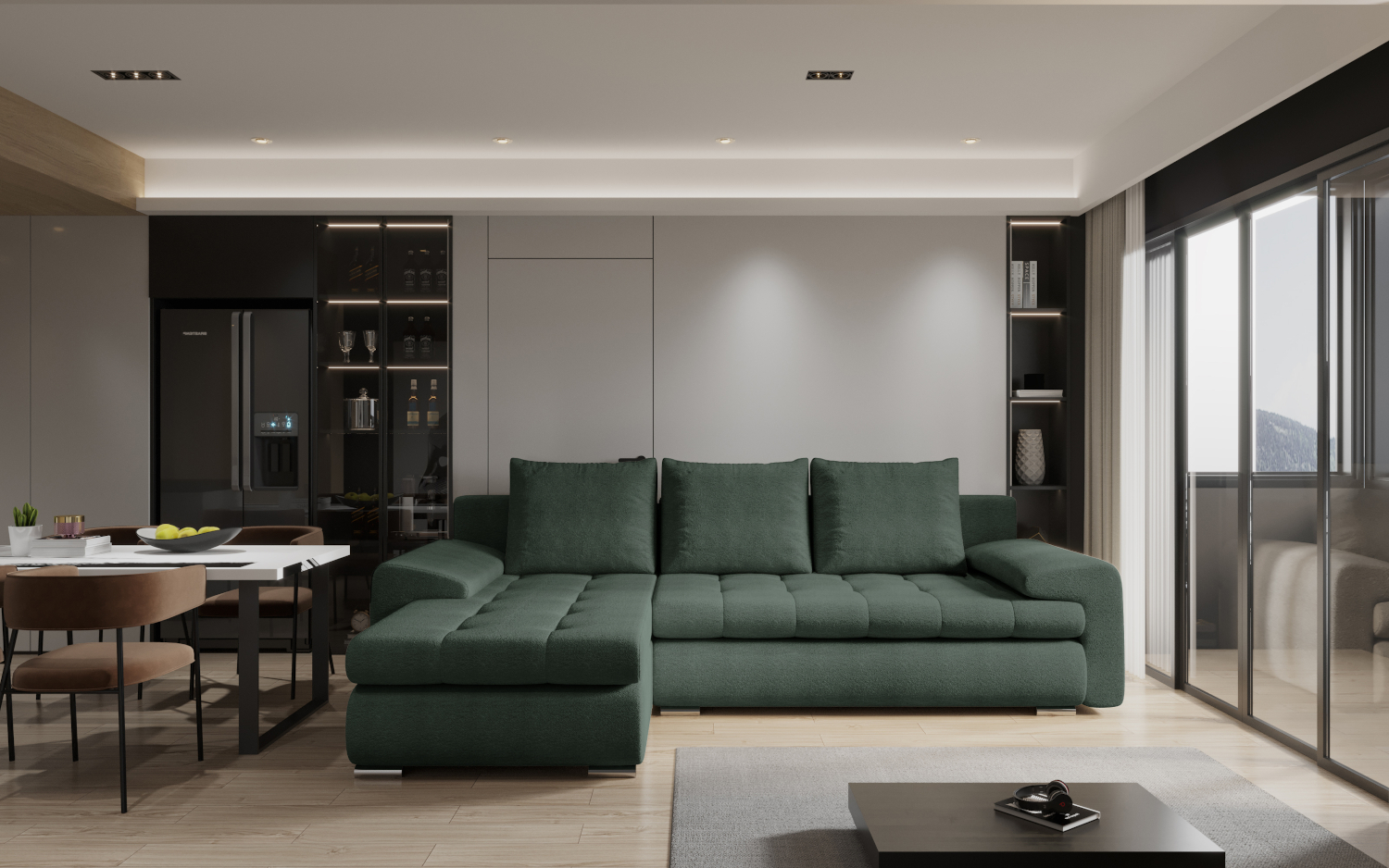 Rohová rozkládací sedačka TOMI - dokonalé spojení elegance a funkčnosti. Pohovka TOMI je ideální volbou pro ty, kteří hledají kombinaci pohodlí, funkčnosti a moderního designu. Tato rozkládací rohová sedačka se snadno promění na prostorné lůžko, což je skvělé pro přespání hostů nebo relaxaci během dne. Praktický úložný prostor navíc poskytuje dostatek místa pro uložení lůžkovin, dek nebo sezónního oblečení, a pomáhá tak udržet váš obývací pokoj uklizený a organizovaný. Díky svým čistým liniím a minimalistickému vzhledu se sedačka TOMI hodí do většiny současných interiérů, ať už preferujete skandinávský, moderní nebo industriální styl. Sedačka je dostupná ve dvou kvalitních a odolných látkách, Abriamo a Castel, a v sedmi stylových barevných variantách, takže si snadno vyberete odstín, který dokonale doplní váš domov. Látka Abriamo vyniká svou jemnou strukturou a příjemným povrchem na dotek, zatímco Castel se vyznačuje vyšší odolností proti opotřebení a pevnějším vzhledem. Ať už se rozhodnete pro klasickou šedou, elegantní béžovou, nebo se odvážete s výraznější modrou či růžovou, sedačka TOMI přinese do vašeho interiéru komfort a styl. UPOZORNĚNÍ: U tohoto produktu vyžadujeme platbu předem. NELZE objednat na dobírku. PROVEDENÍ Sedák pohovky vybaven vlnovými pružinami Objemný úložný prostor 3 opěrné polštáře se zipy Látka Abriamo Funkce spaní ROZMĚRY Hloubka - 150 cm Hloubka sedáku - 75 cm Šířka - 237 cm Výška - 85 cm Rozměrová tolerance +/- 3 cm.