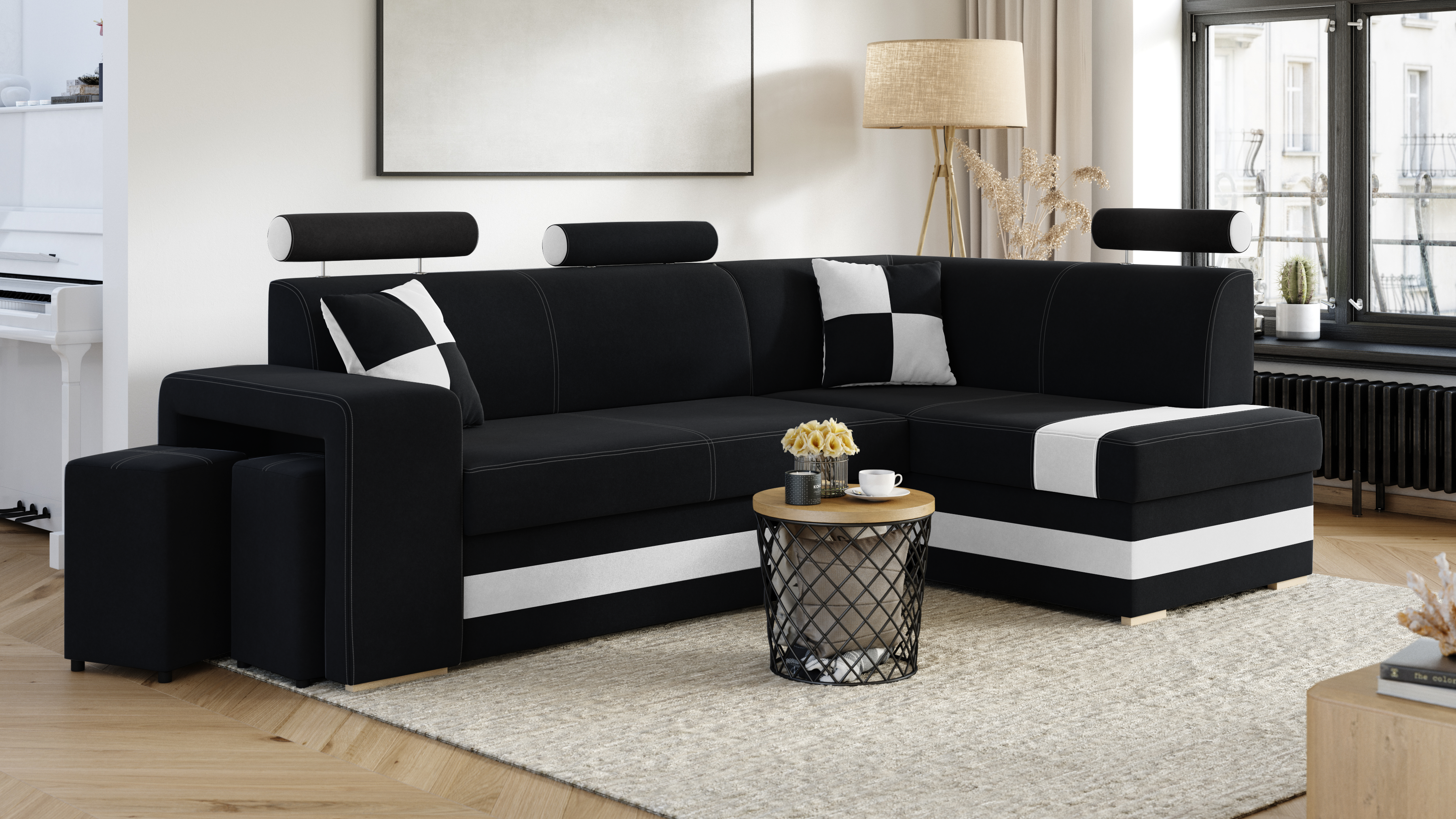 FRONTI Rohová rozkládací sedačka VEGAS černá-bílá 22110