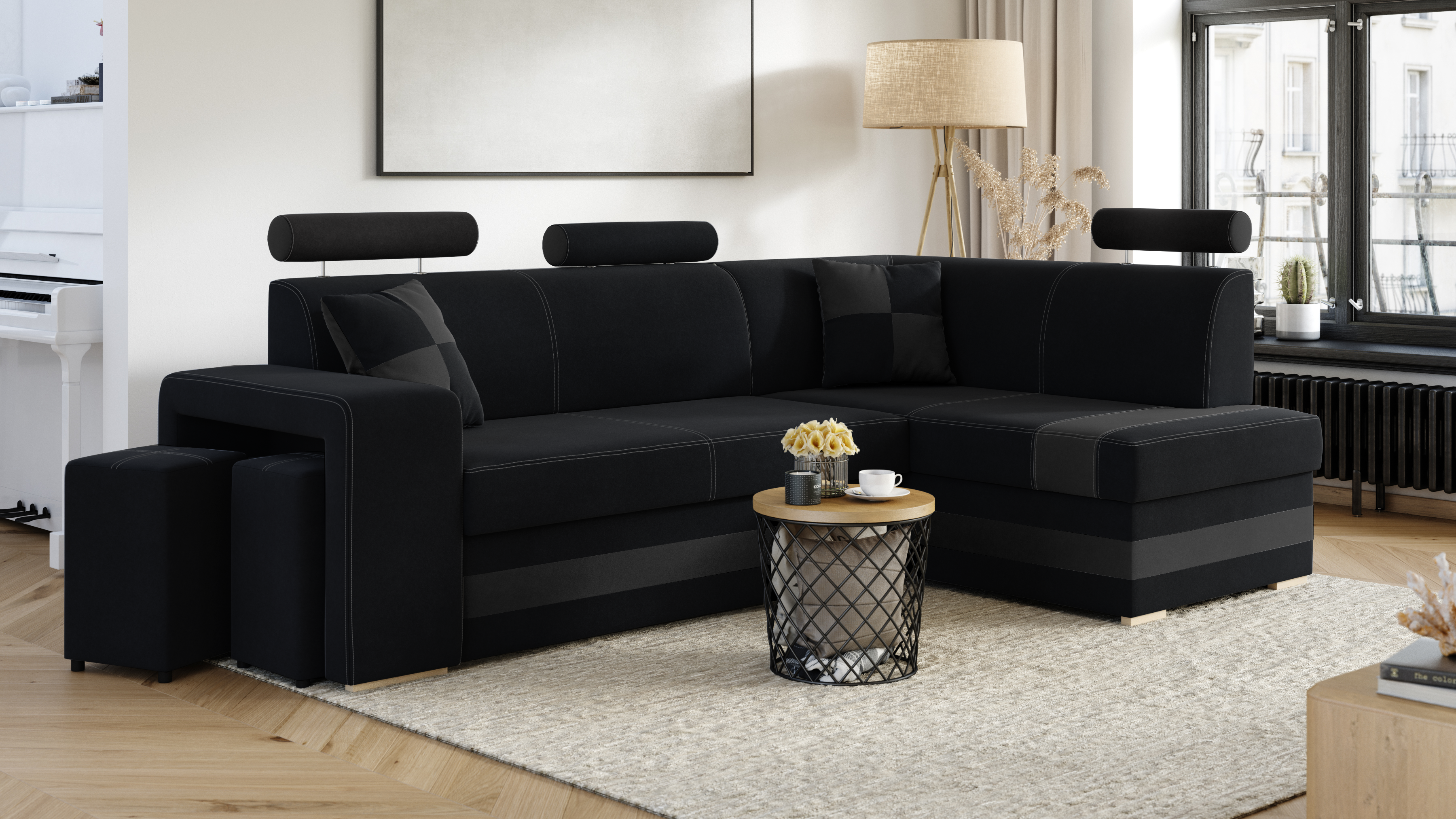 FRONTI Rohová rozkládací sedačka VEGAS černá-tmavěšedá 17221