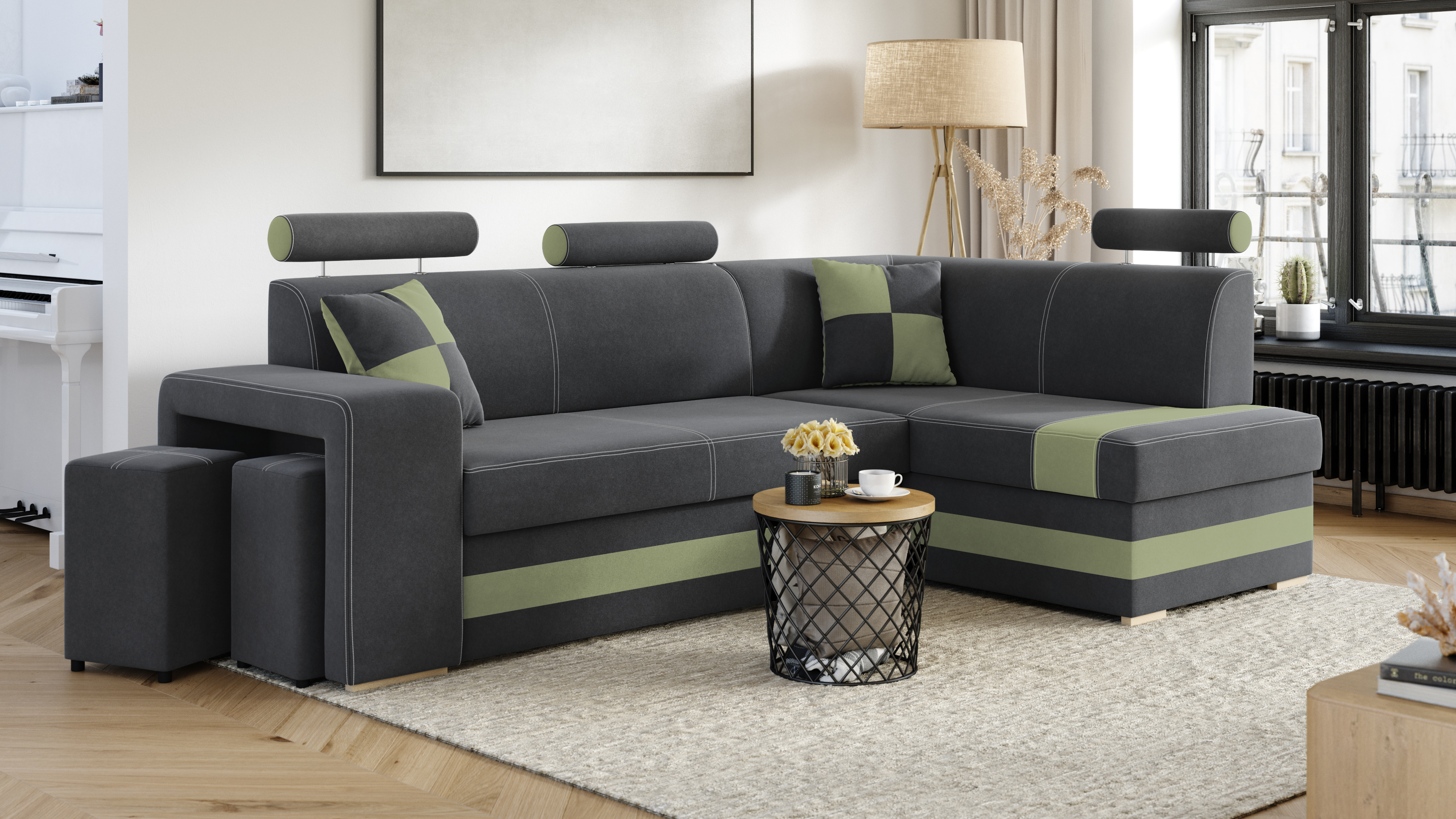 Domů Nábytek Obývací pokoj Sedací soupravy FRONTI Rohová rozkládací sedačka VEGAS šedá-zelená 17225