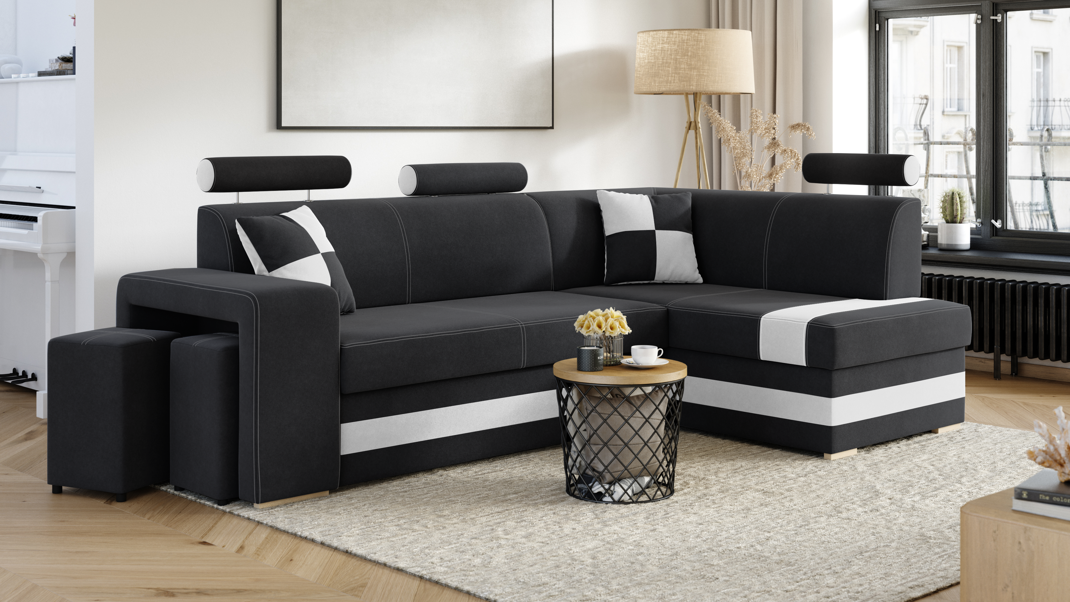 Domů Nábytek Obývací pokoj Sedací soupravy FRONTI Rohová rozkládací sedačka VEGAS tmavěšedá-bílá 17226