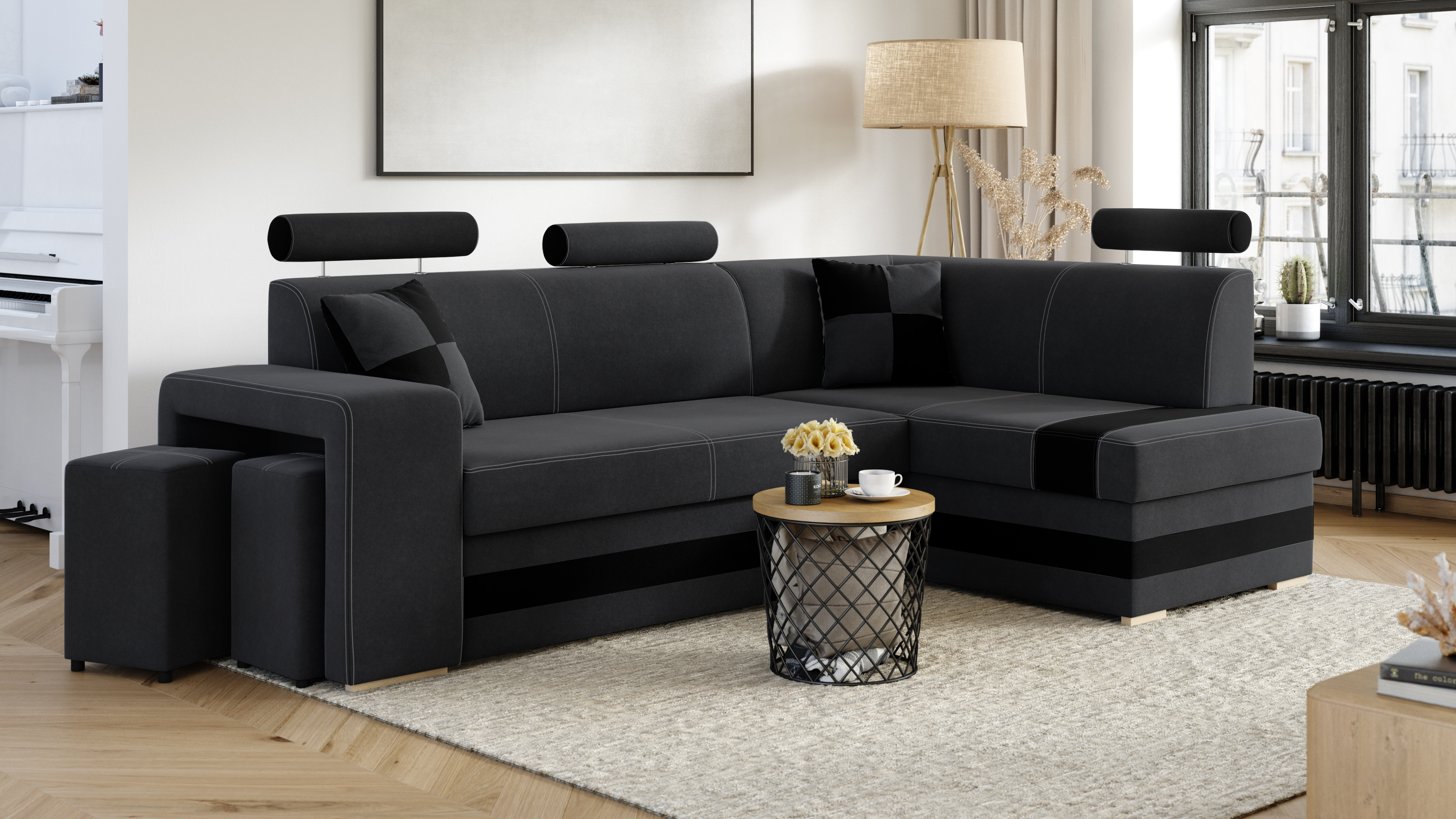 Domů Nábytek Obývací pokoj Sedací soupravy FRONTI Rohová rozkládací sedačka VEGAS tmavěšedá-černá 20337
