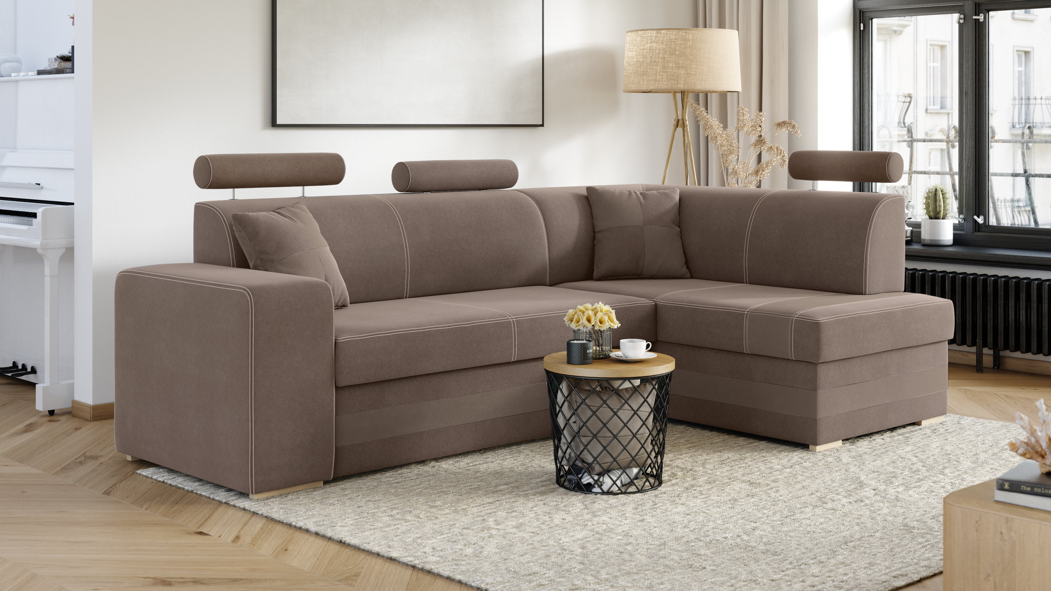 FRONTI Rohová rozkládací sedačka VEIRA - béžová 20352